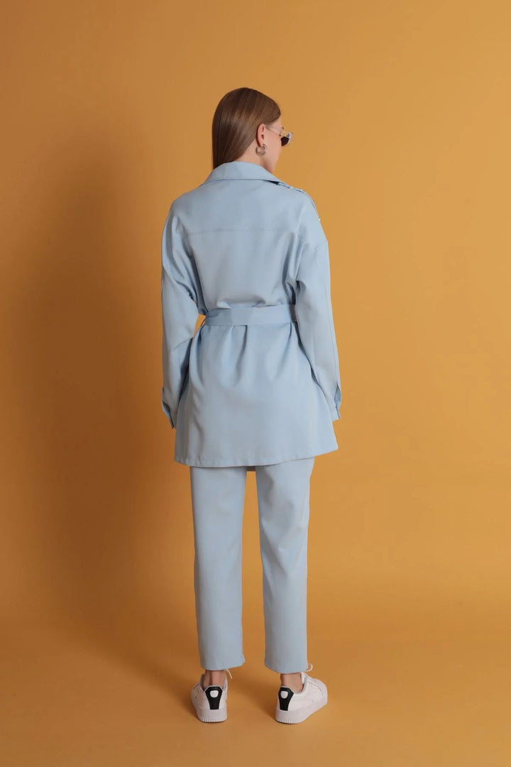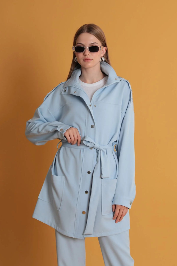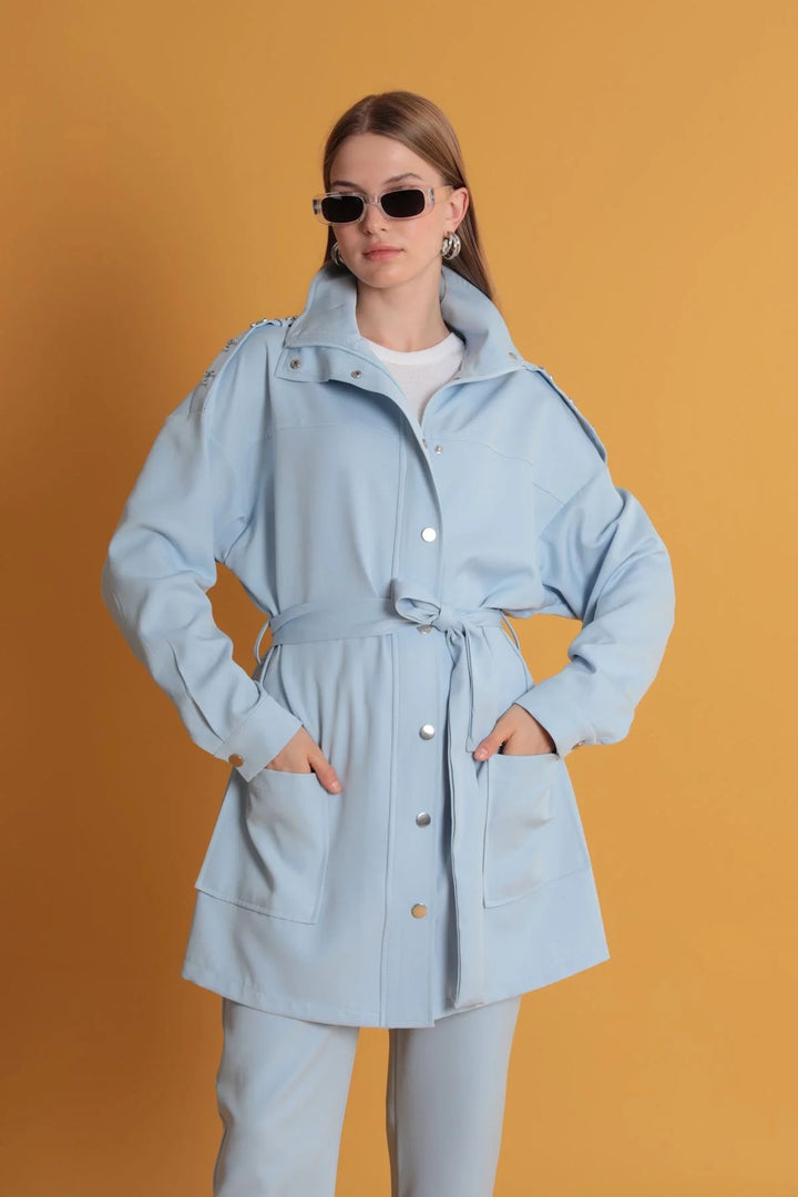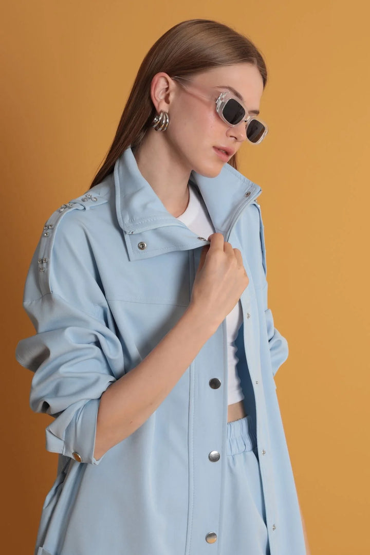 Apoletleri Taşlı Kadın Bebemavi Ceket