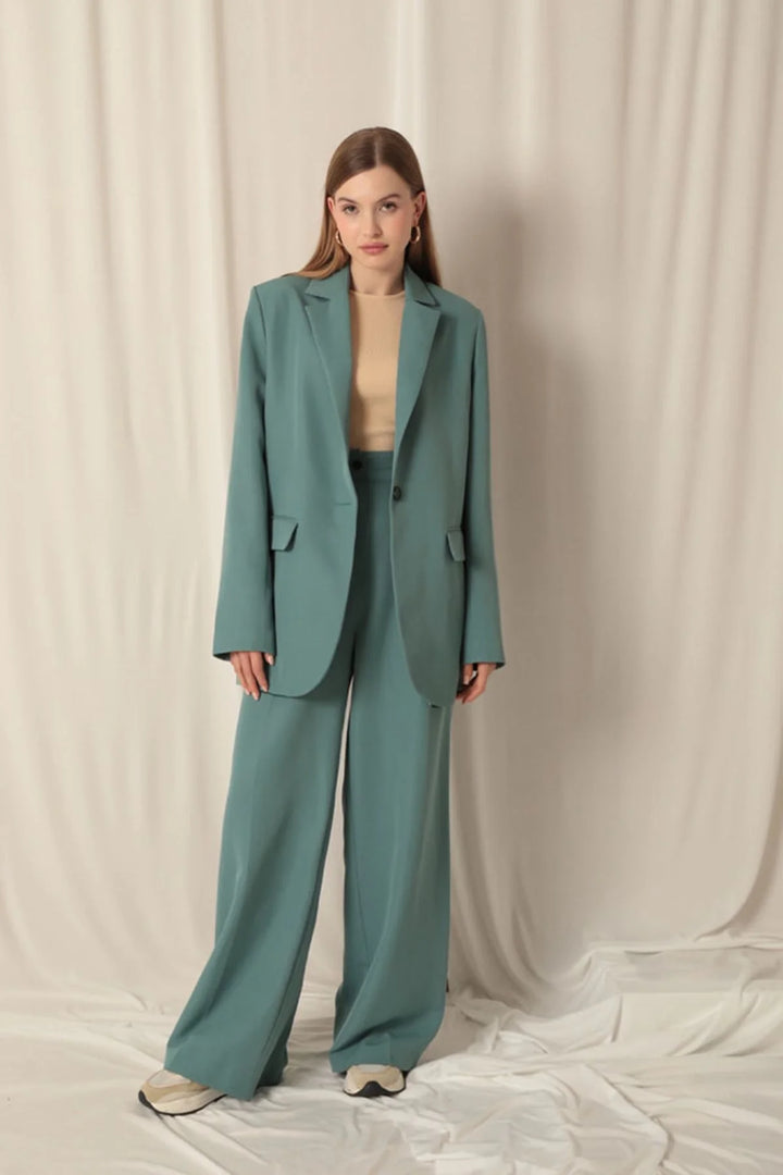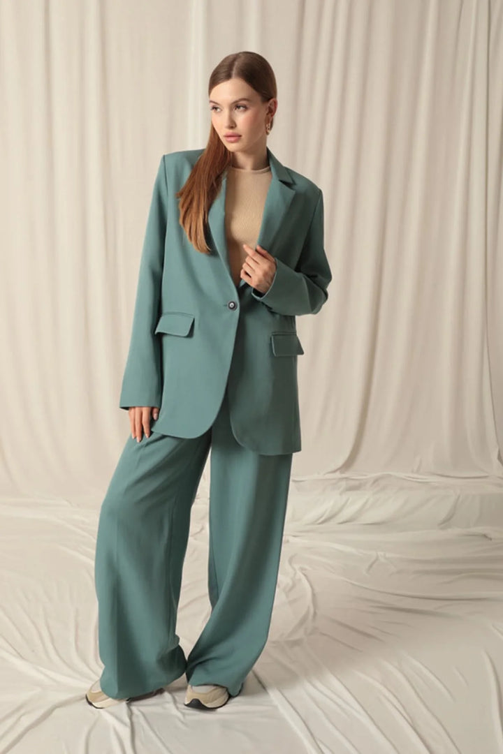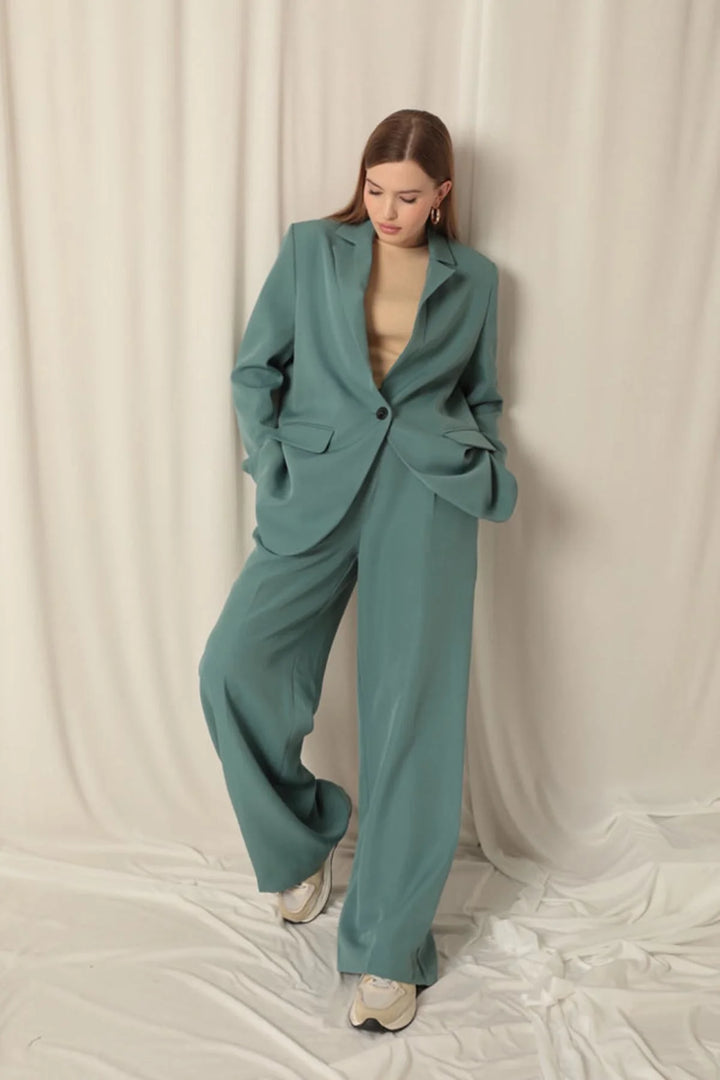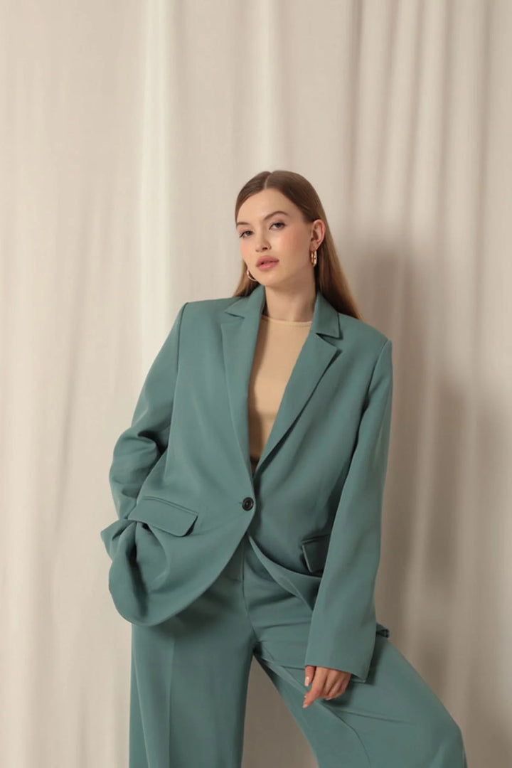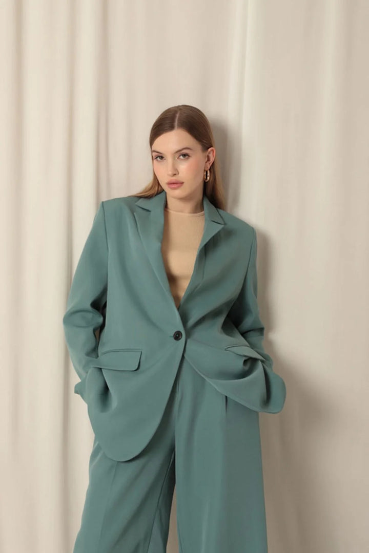 Atlas Kumaş Kadın Oversize Yeşil Ceket