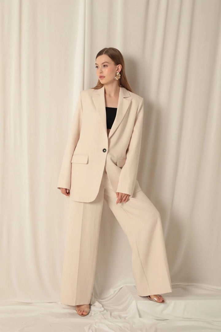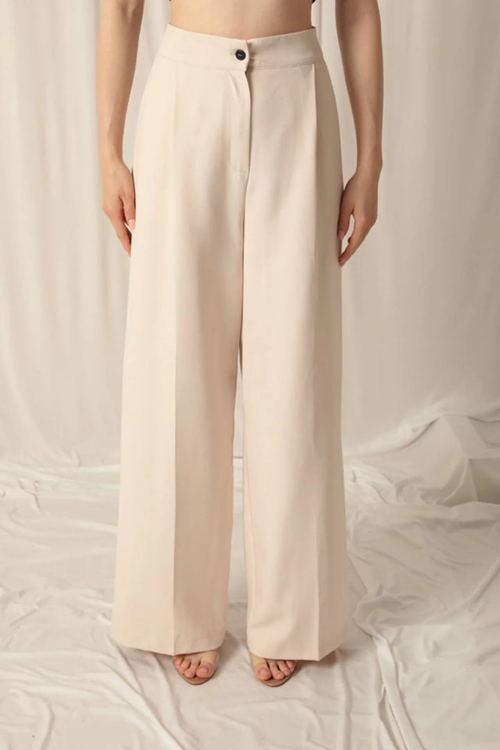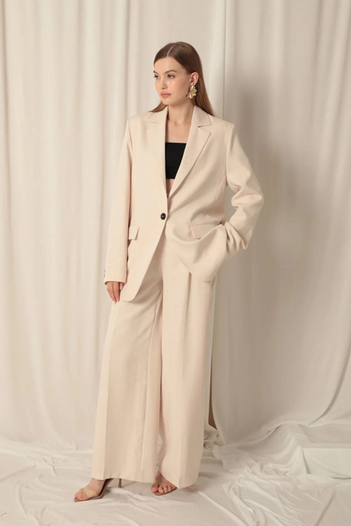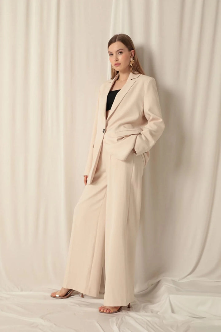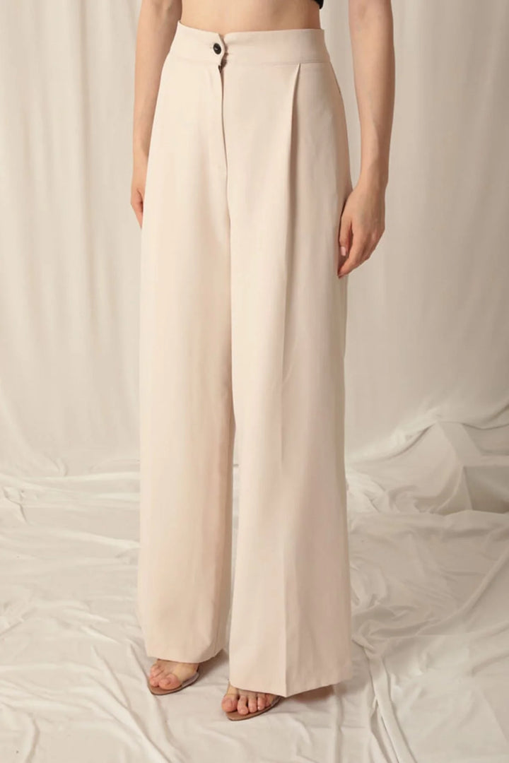 Atlas Kumaş Palazzo Kadın Bej Pantolon