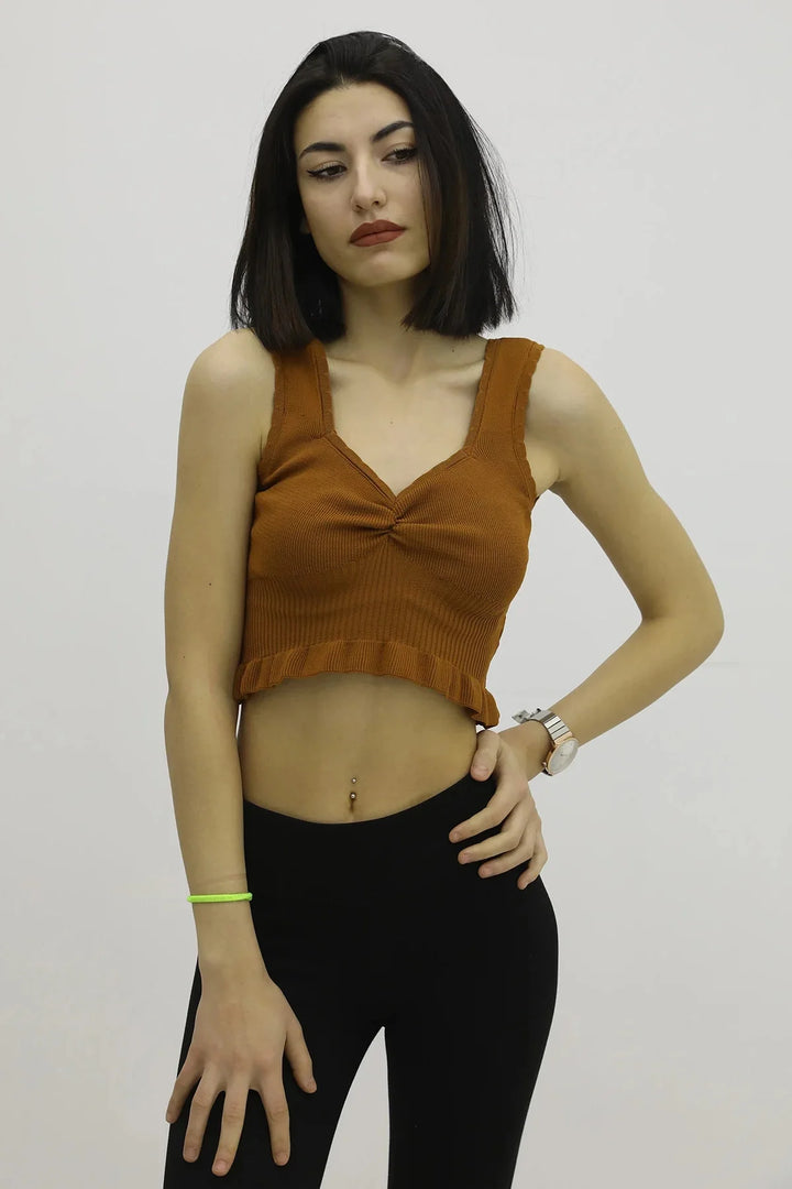 Bel Lastikli Triko Bluz Taba - P-019708