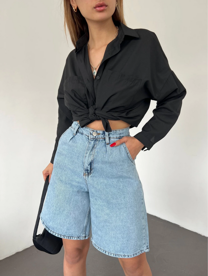 Çift Cepli Bermuda Denim Şort