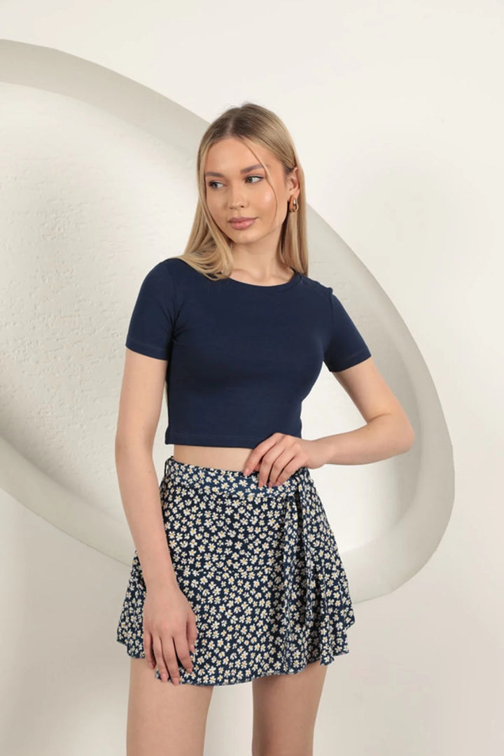 Çilek Viskon Kumaş Basic Crop-Lacivert