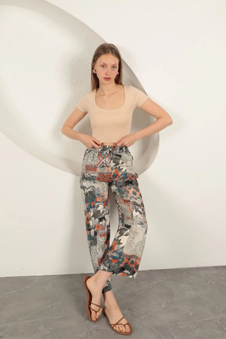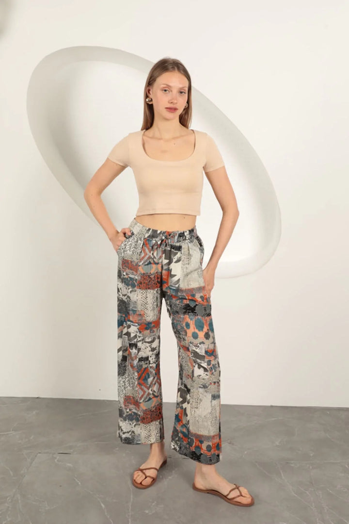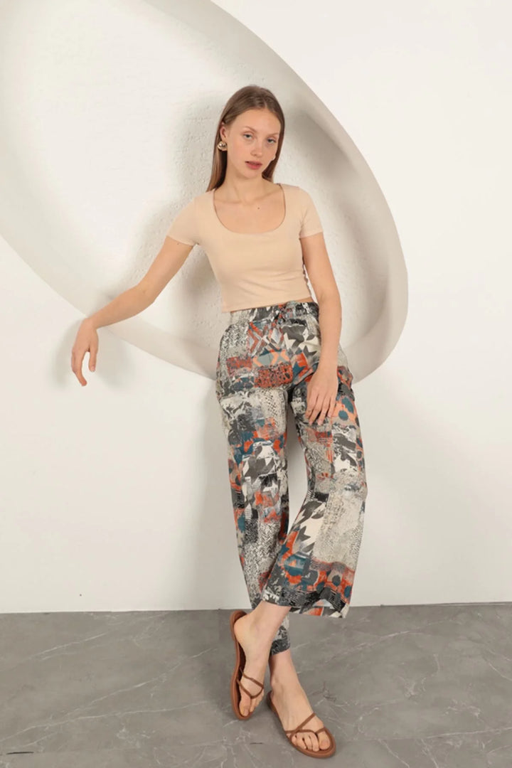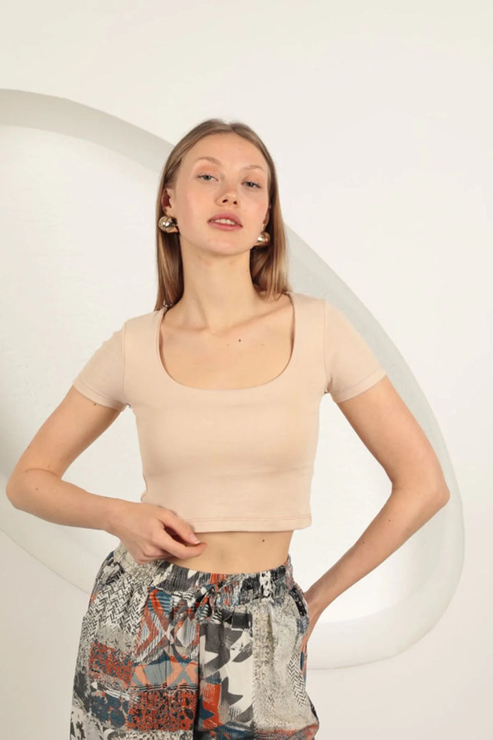 Çilek Viskon Kumaş U Yaka Bluz-Bej