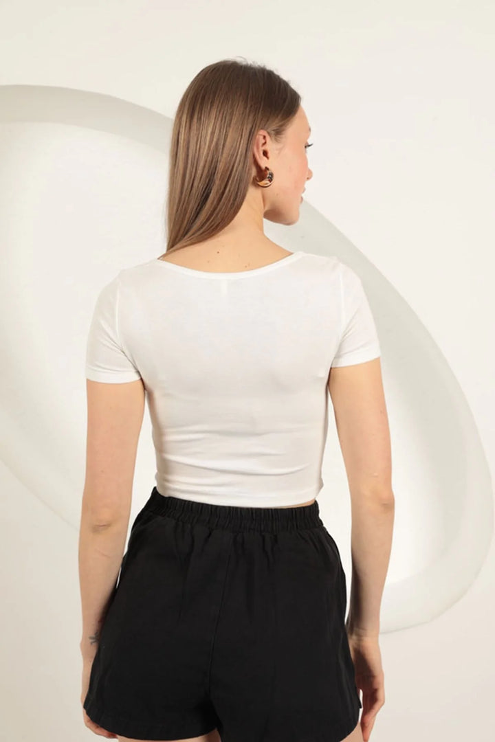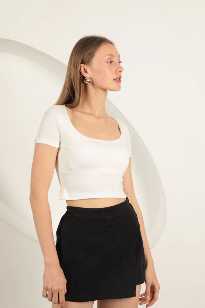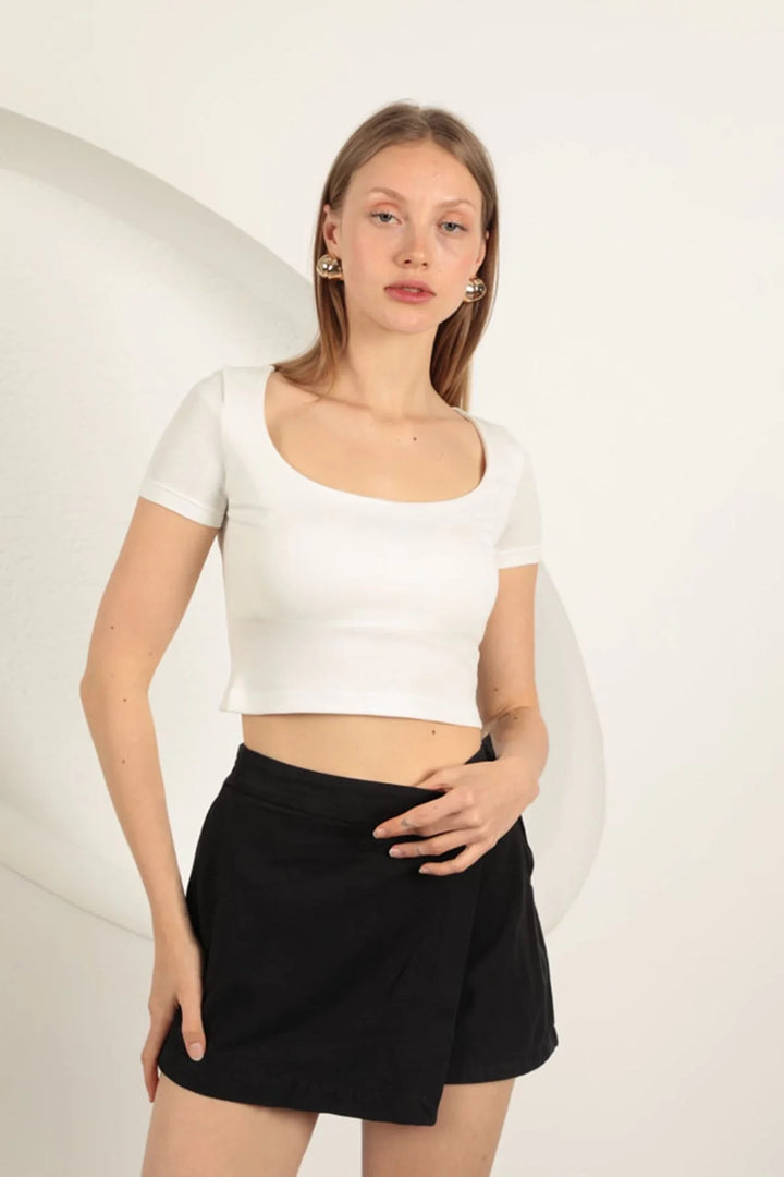 Çilek Viskon Kumaş U Yaka Bluz-Ekru