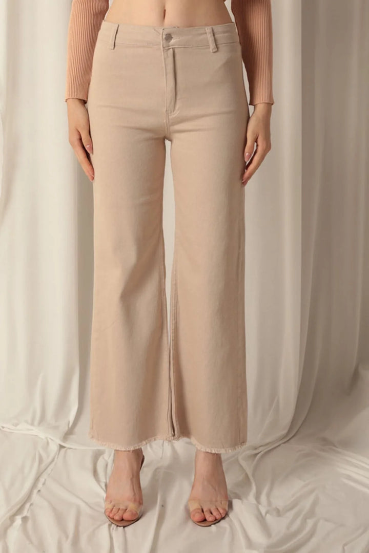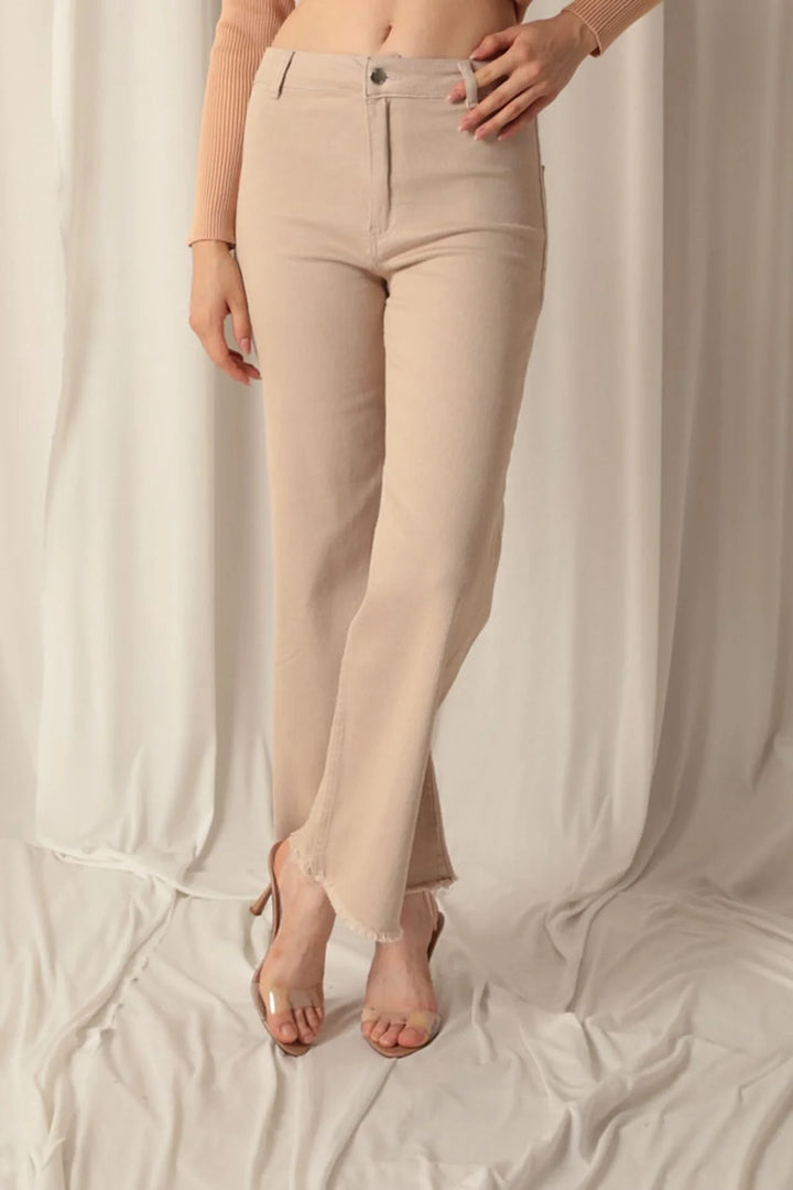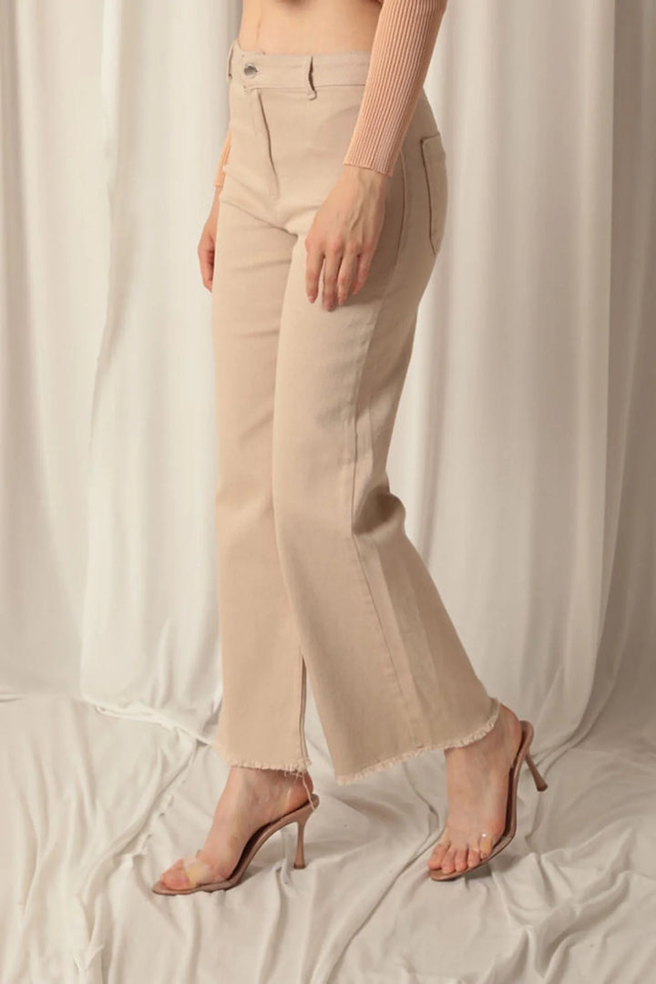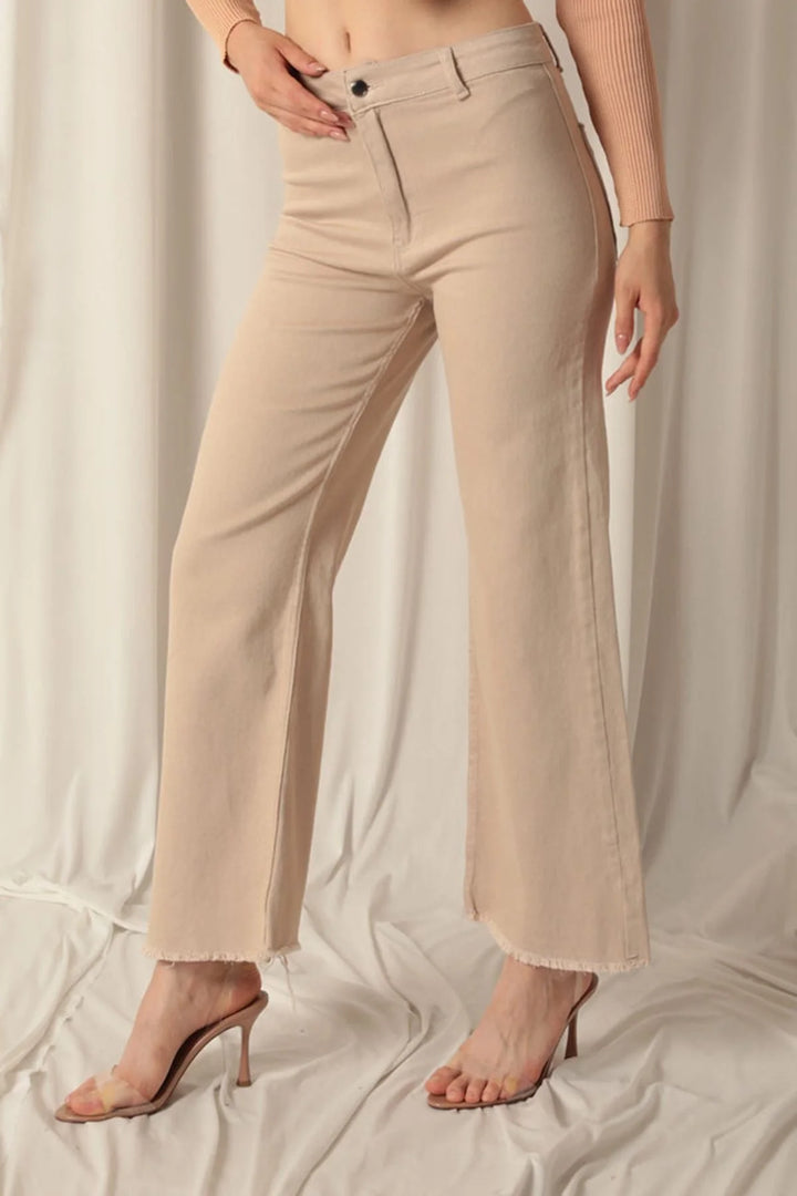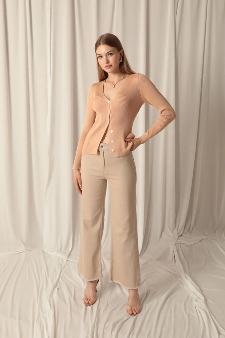 Denim Kumaş Paçası Püsküllü Salaş Kadın Bej Pantolon