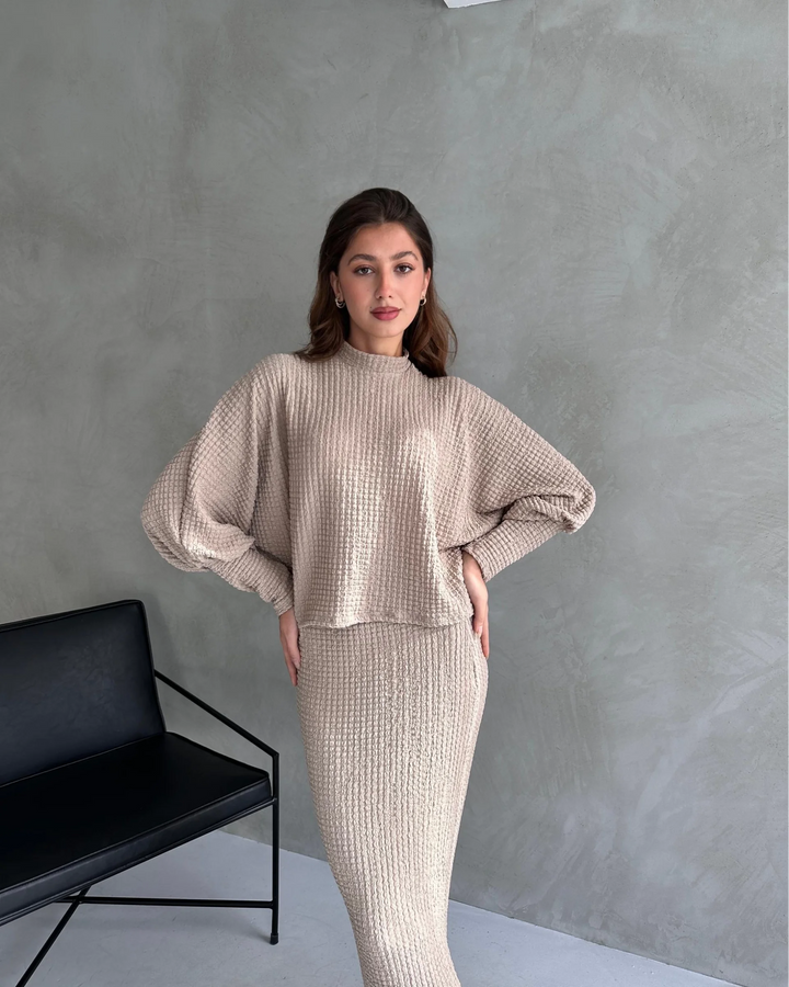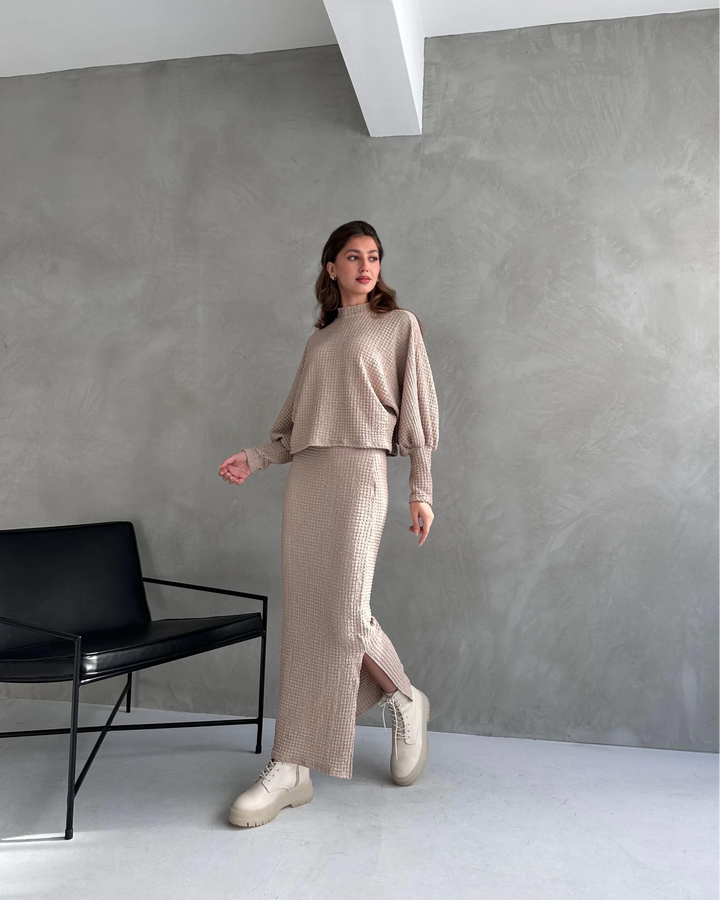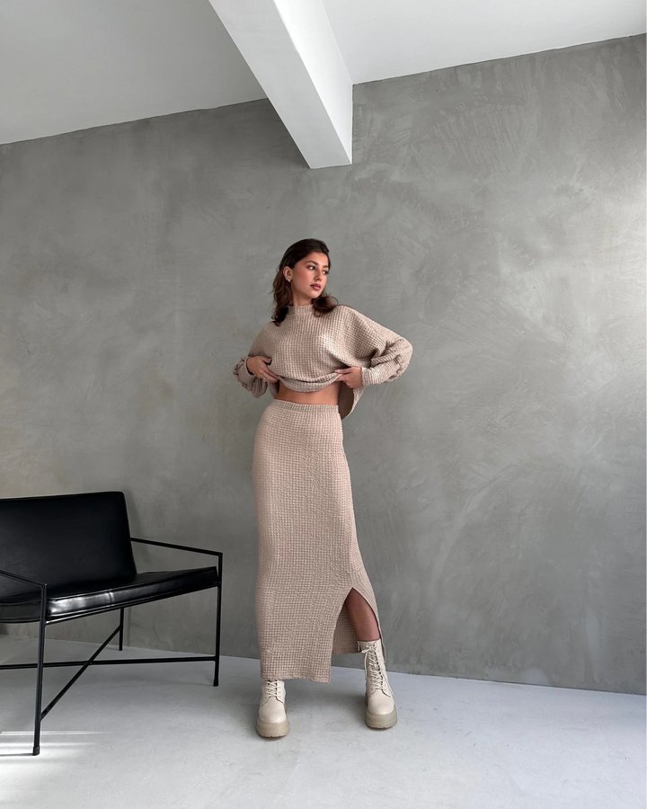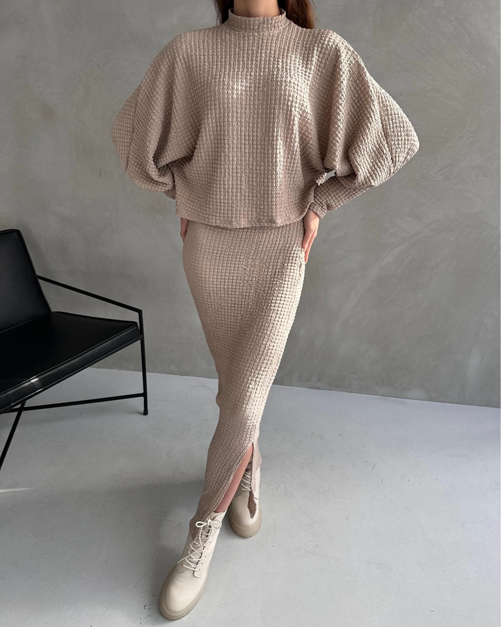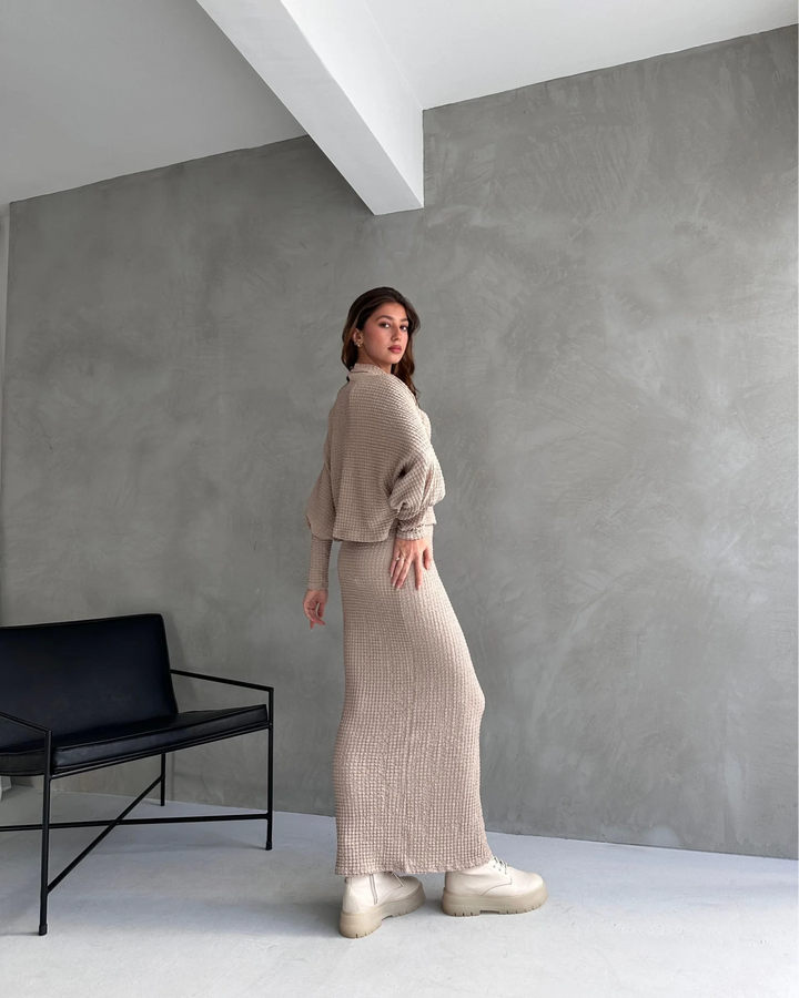 Dokulu Yırtmaç Detaylı Etek Ve Bluz 2'Lİ Takım