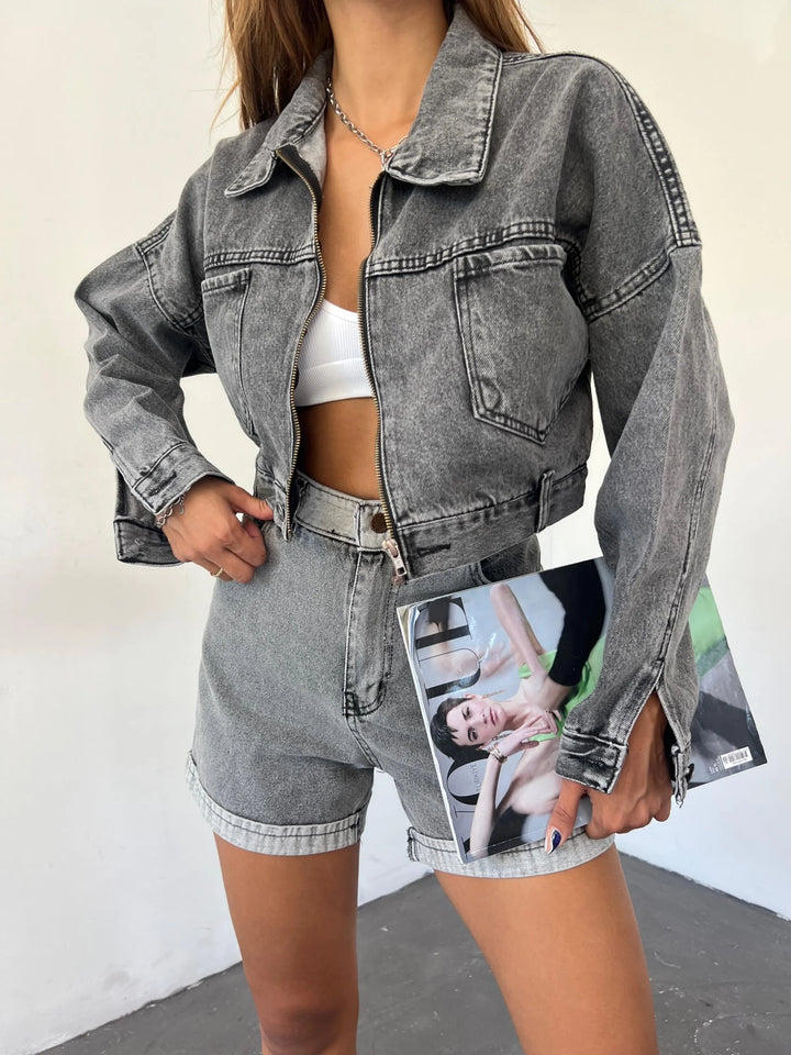 Fermuarlı Çift Cepli Denim Ceket