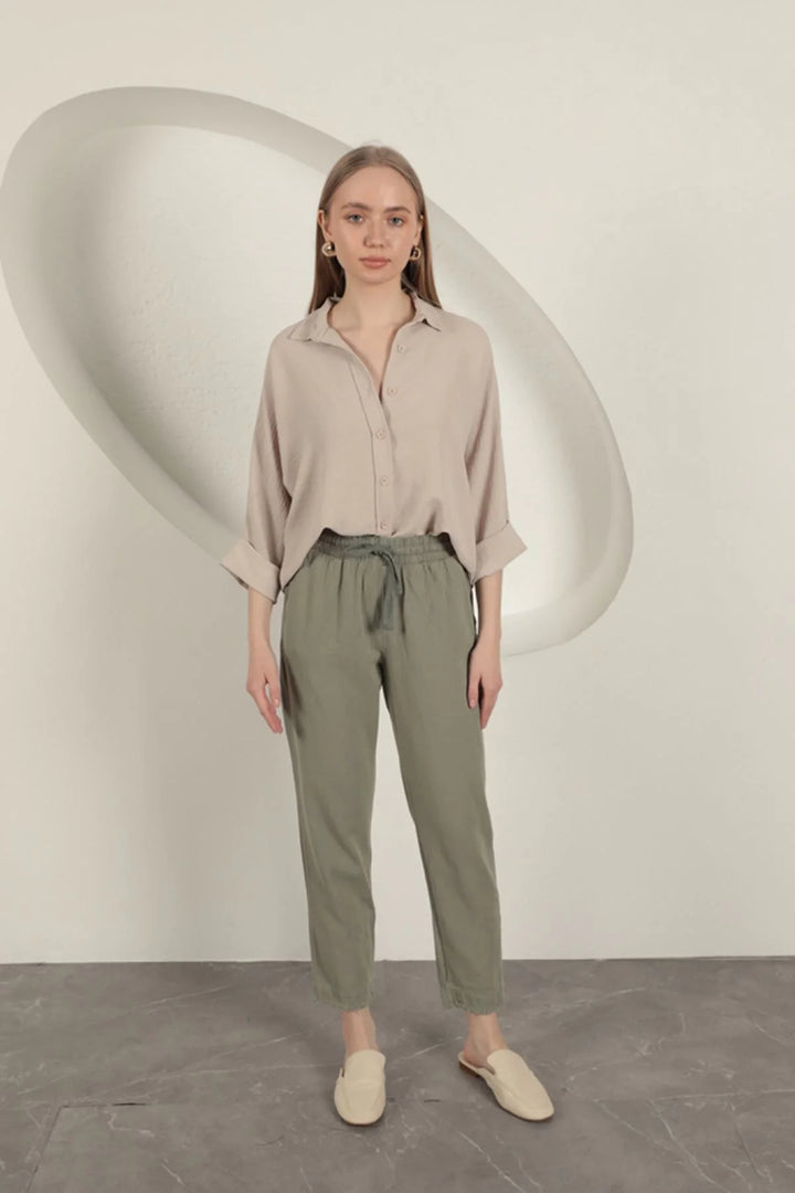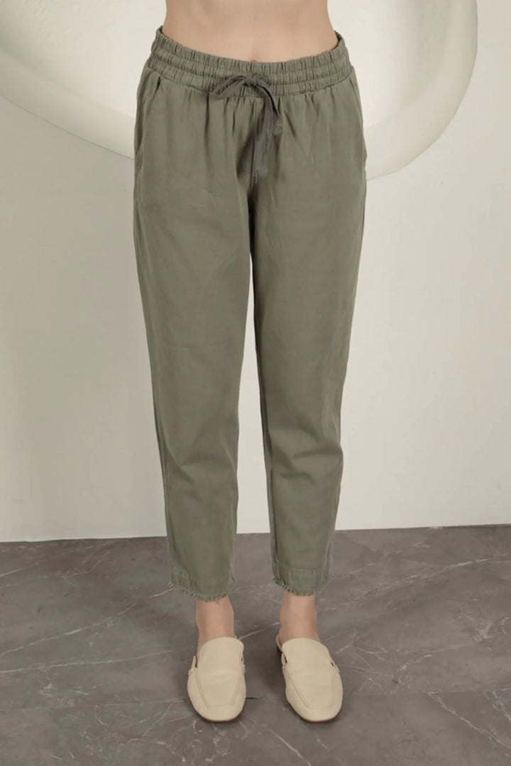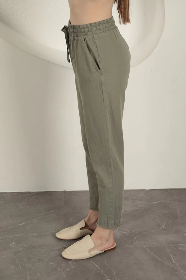 Gabardin Kumaş Püsküllü Kadın Pantolon-Haki