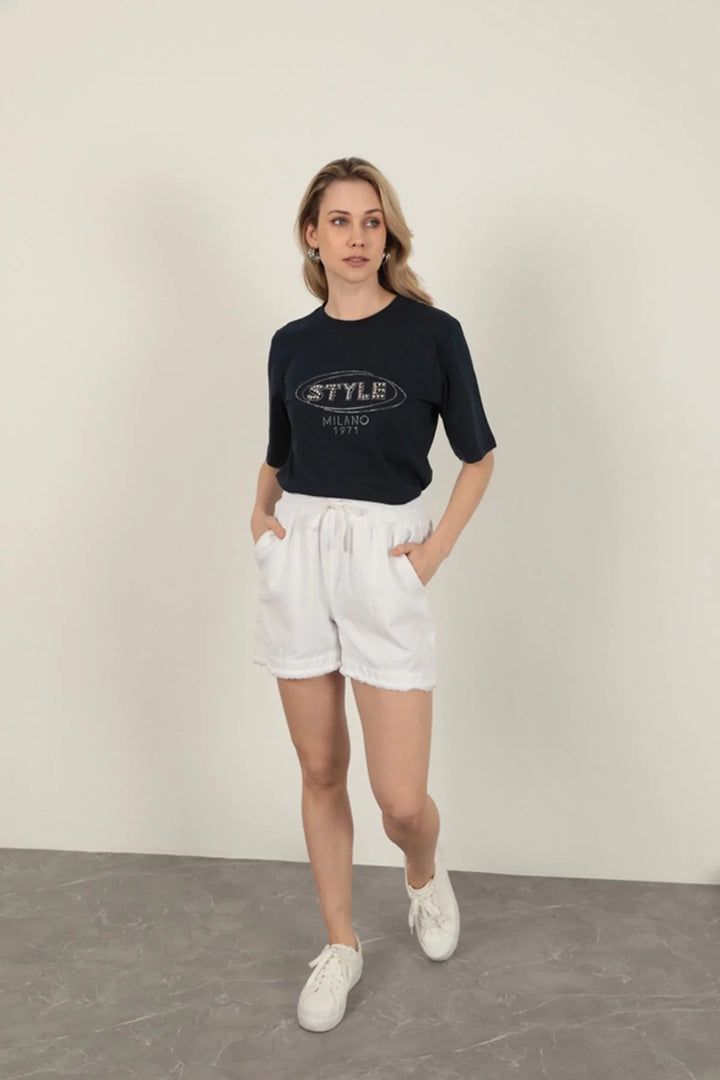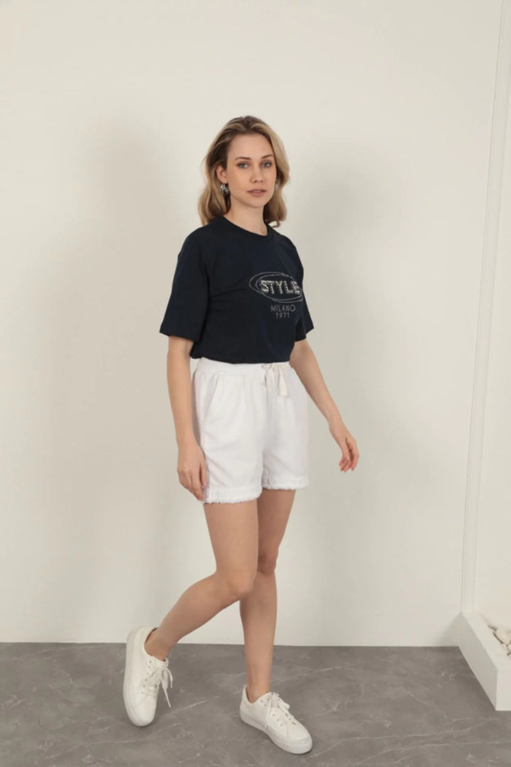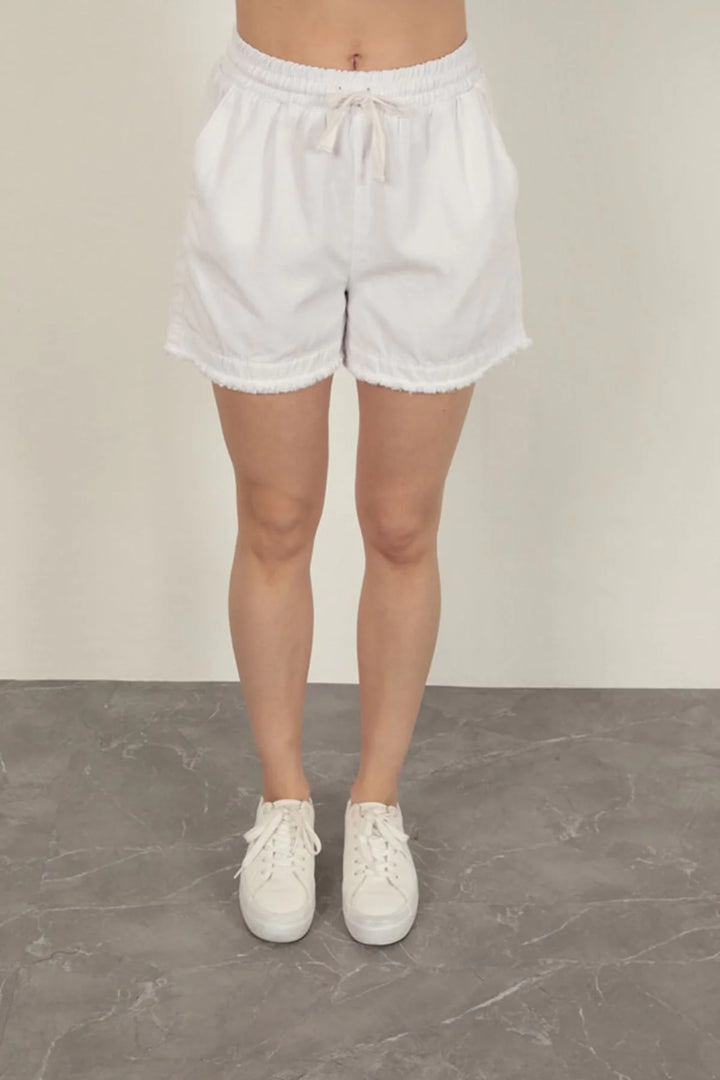 Garbardin Kumaş Püsküllü Kadın Şort-Beyaz