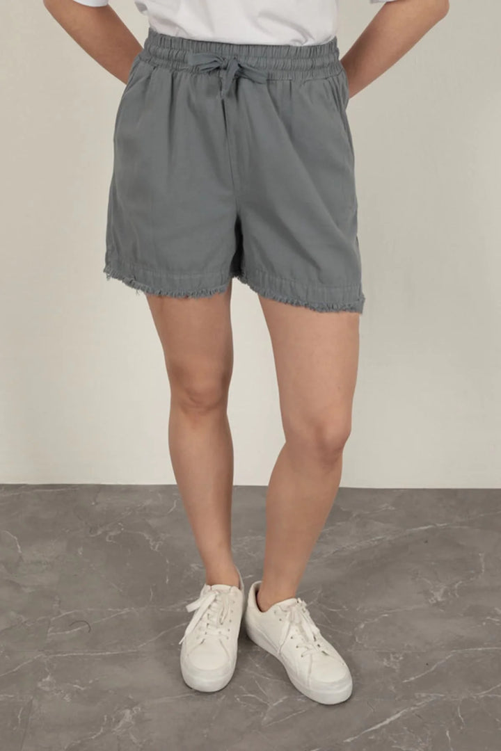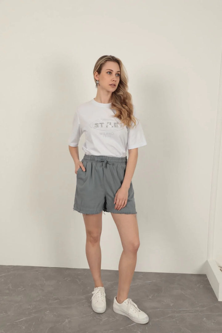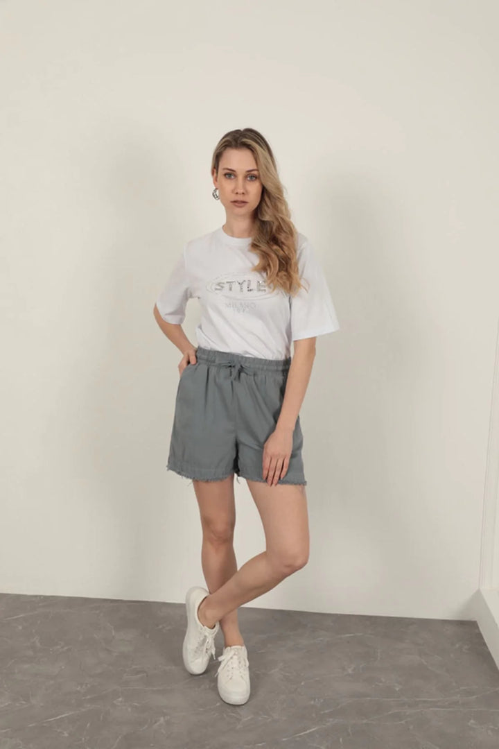 Garbardin Kumaş Püsküllü Kadın Şort-Gri