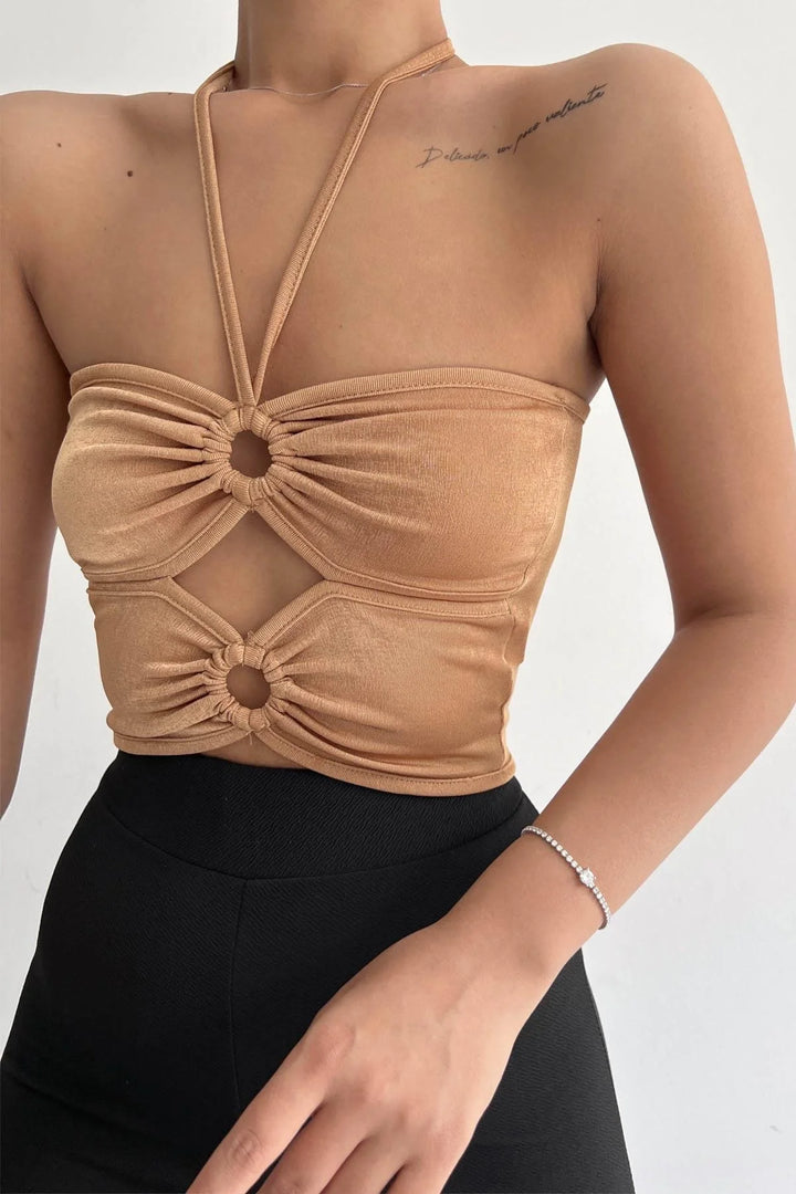 Halka Tokalı Cut Out Top Bluz Camel - 1514.9135.