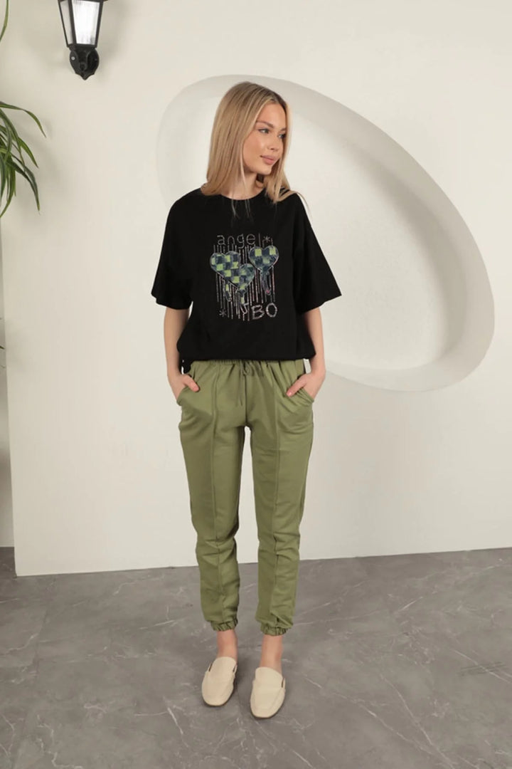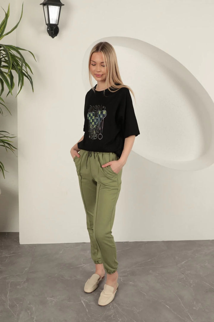 İki İplik Kumaş Çimalı Kadın Eşofman-Haki