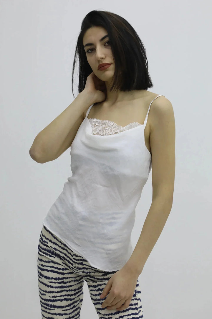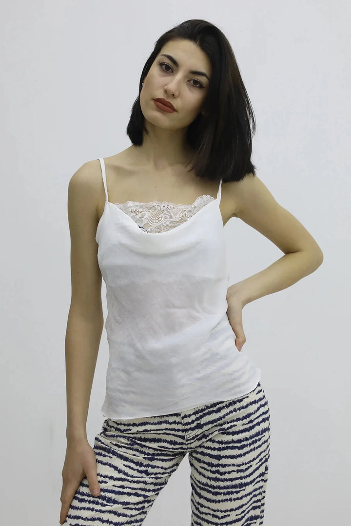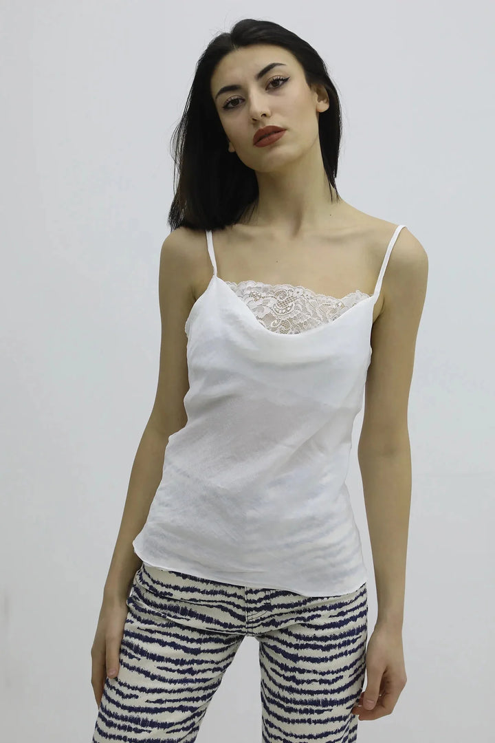 İp Askılı Dantel İşlemeli Bluz Ekru - P-019808