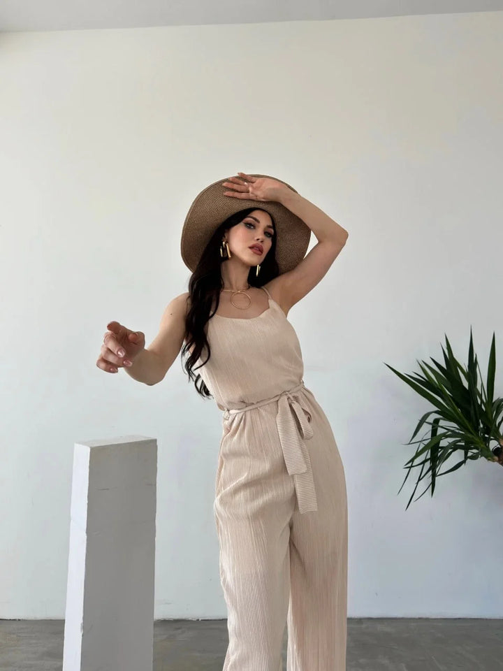 İp Askılı Kuşaklı Krinkle Tulum