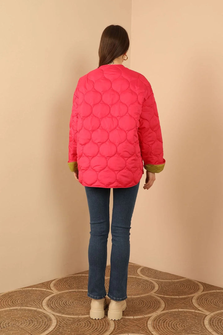 Jesica Kumaş Soğan Desen Kapitone Kadın Mont-FUŞYA