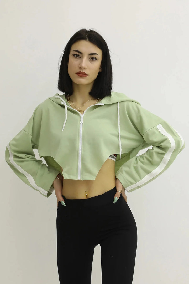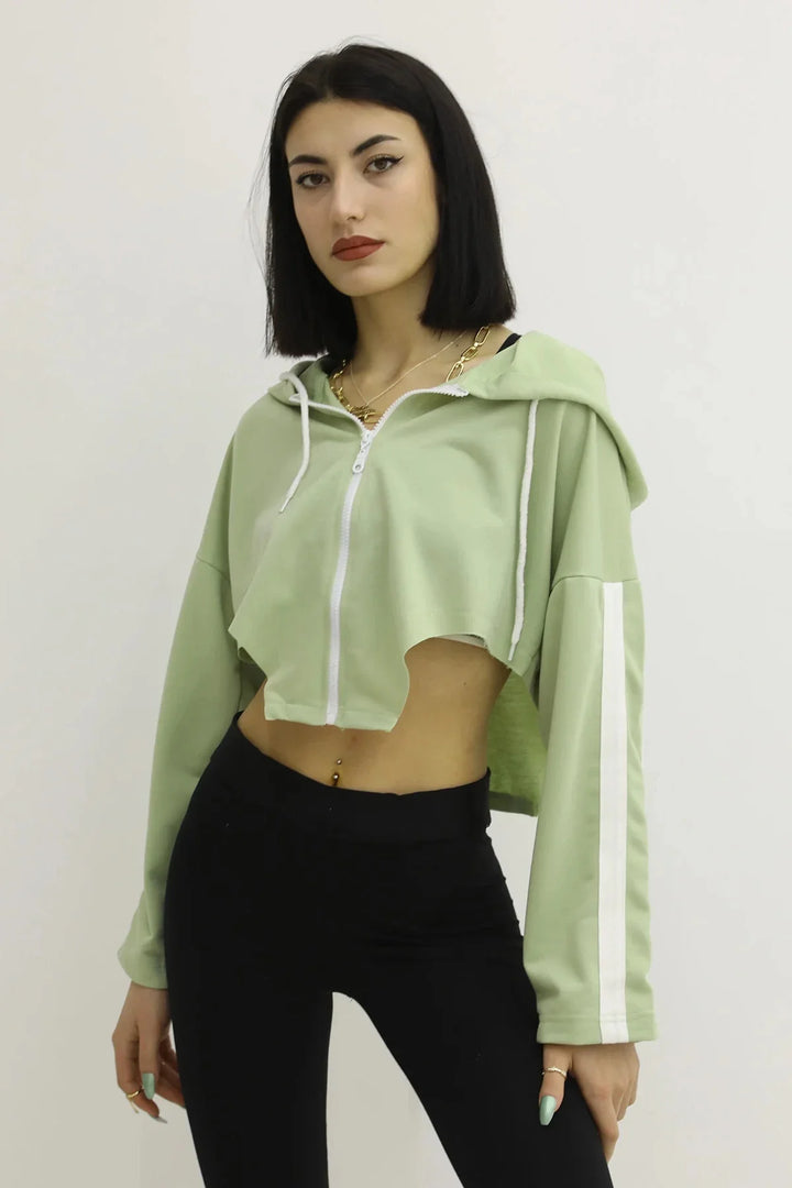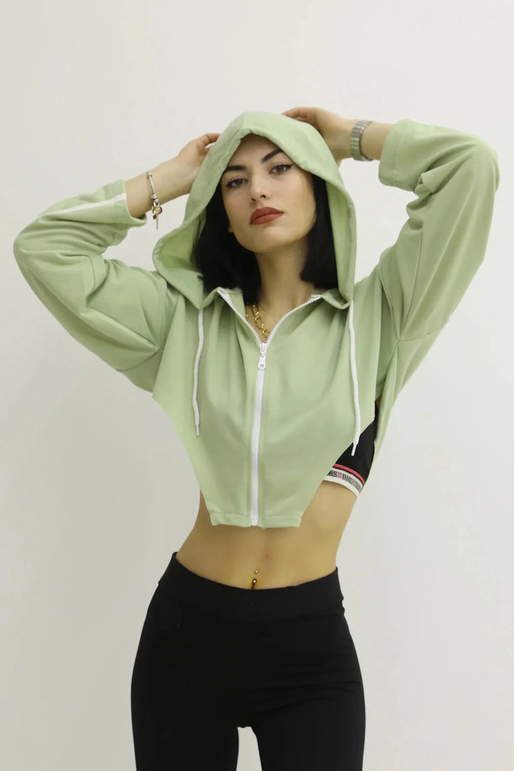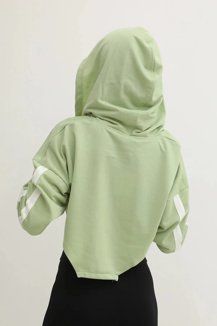 Kapşonlu Yan Dekolteli Sweat Yeşil - P-019669