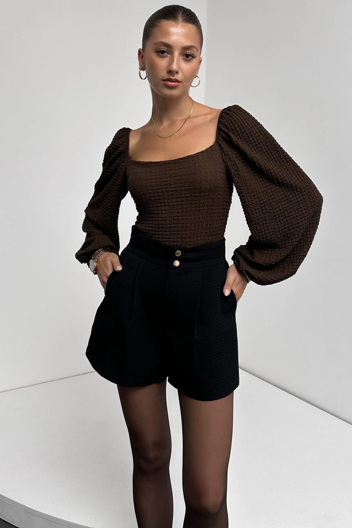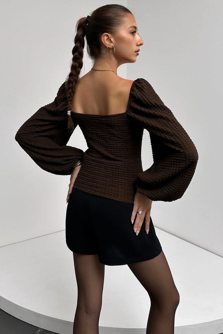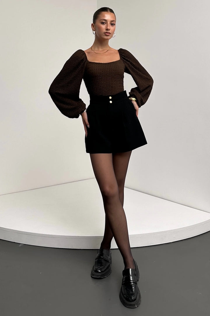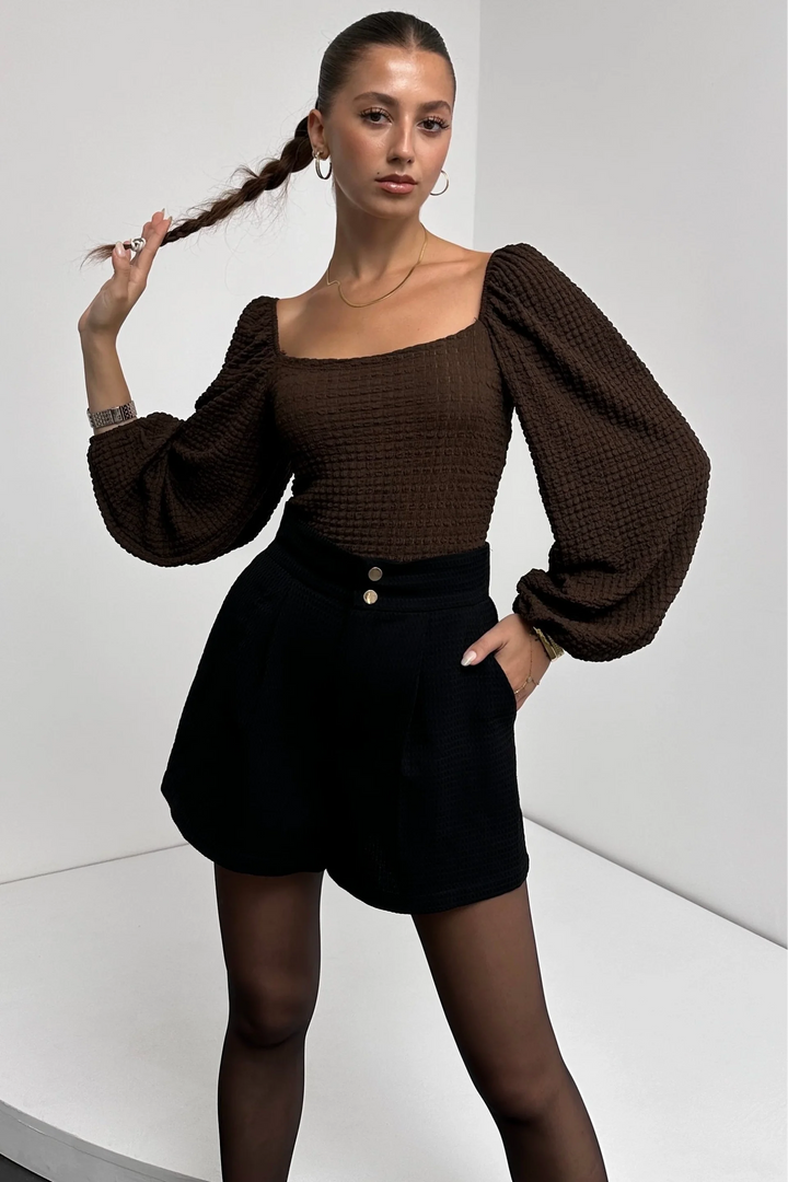 Kare Yaka Balon Kol Bluz
