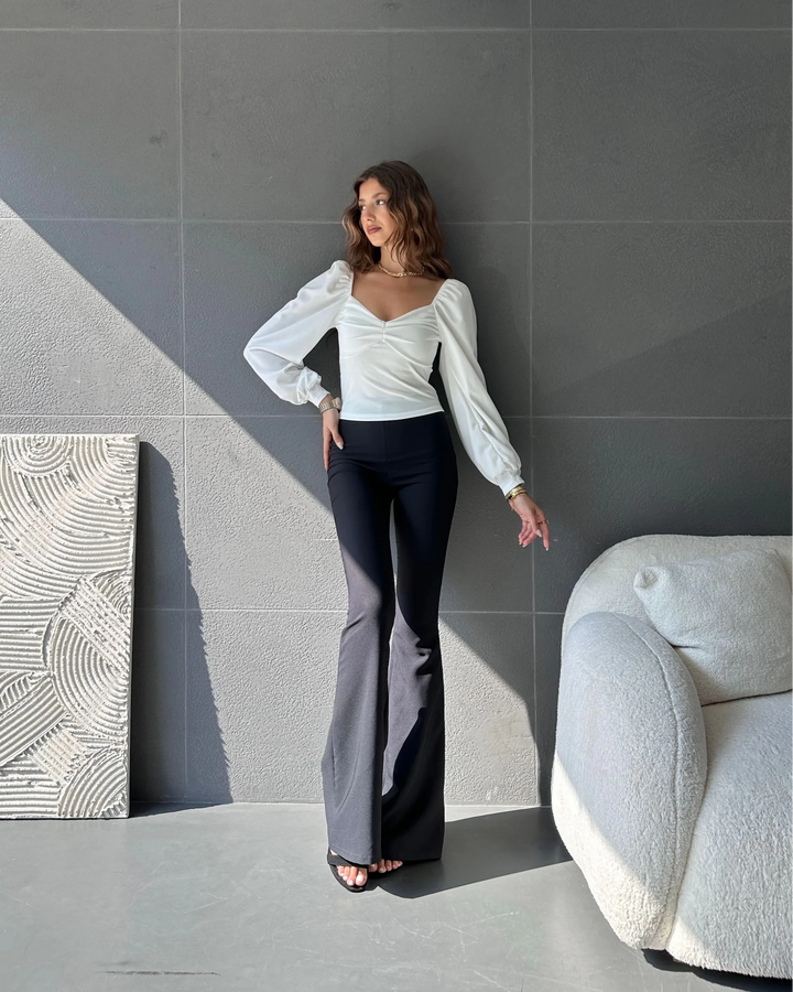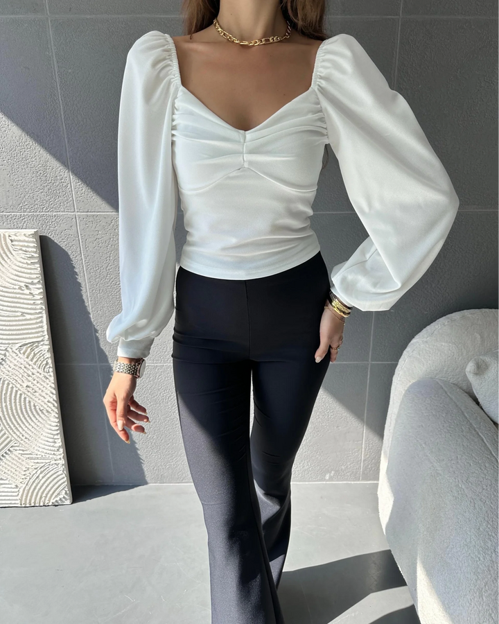 Kare Yaka Büzgü Detaylı Bluz