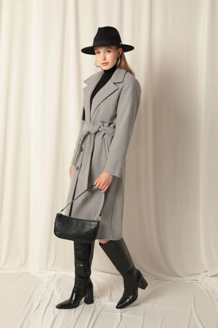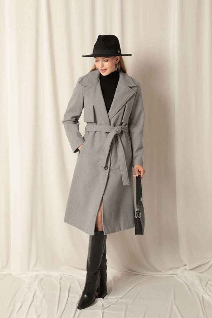 Kaşe Kumaş Allerli Kadın Gri Kaban