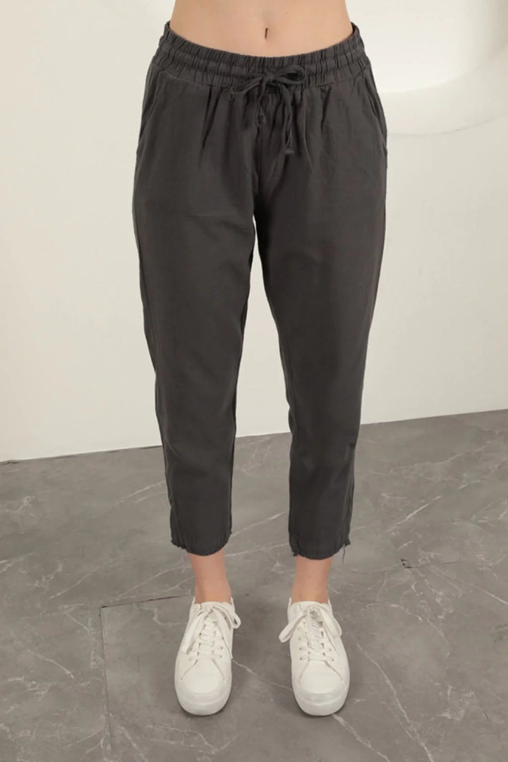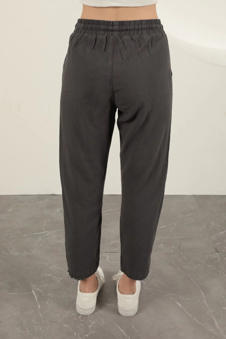 Keten Kumaş Püsküllü Paça Kadın Pantolon-Antrasit