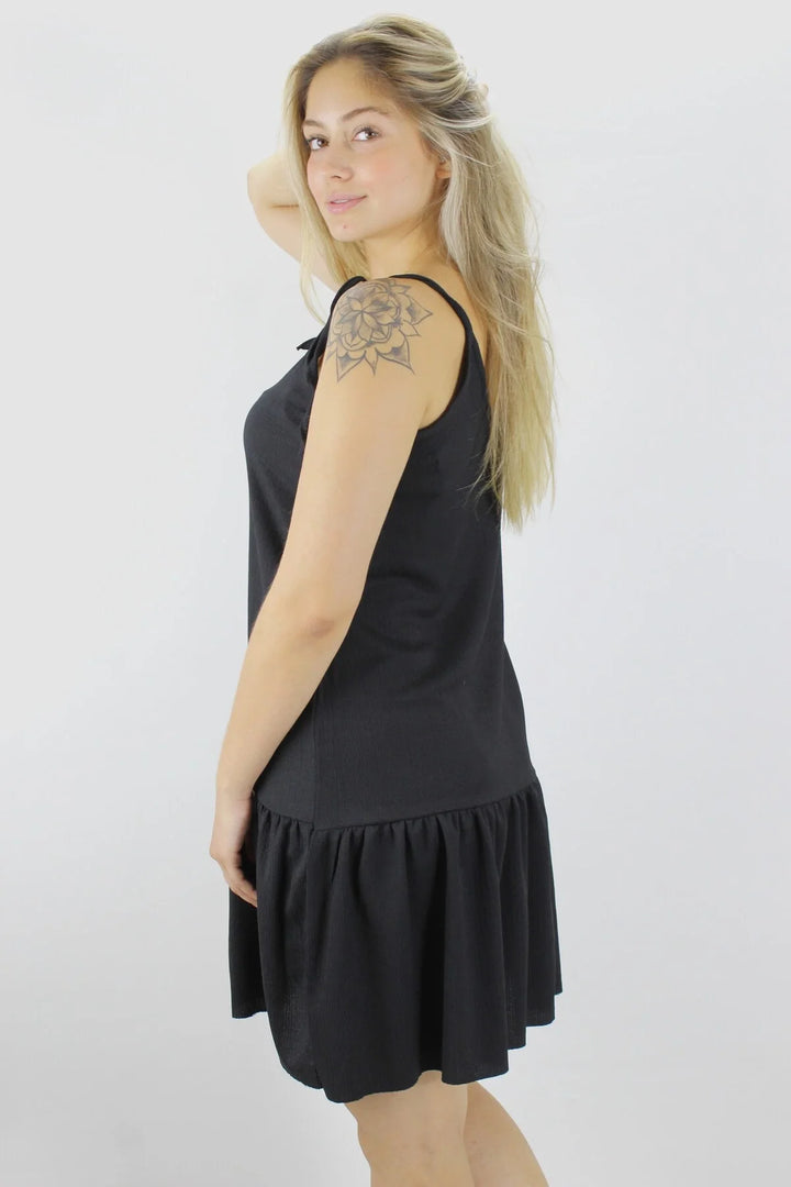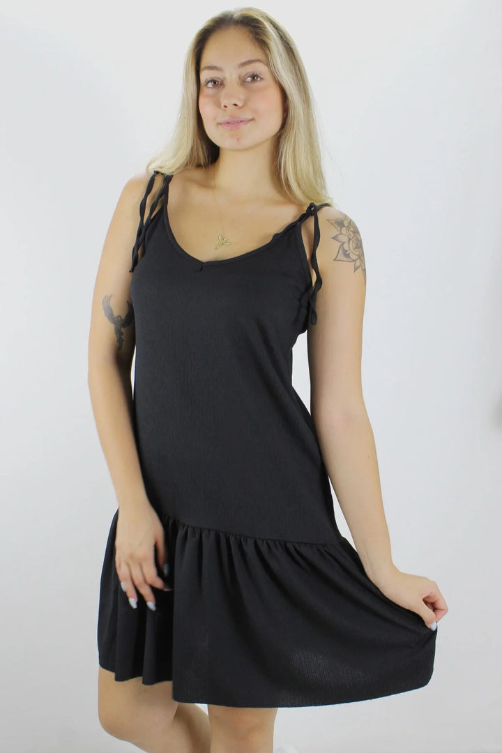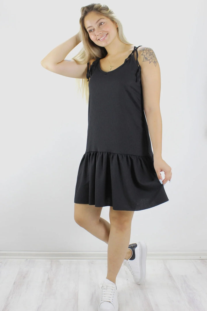 Krinkıl İp Askılı Elbise Siyah - 1456.65