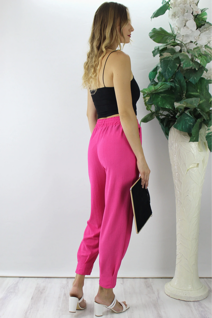 Krinkıl Paça Pensli Pantolon Fuşya - 130.265