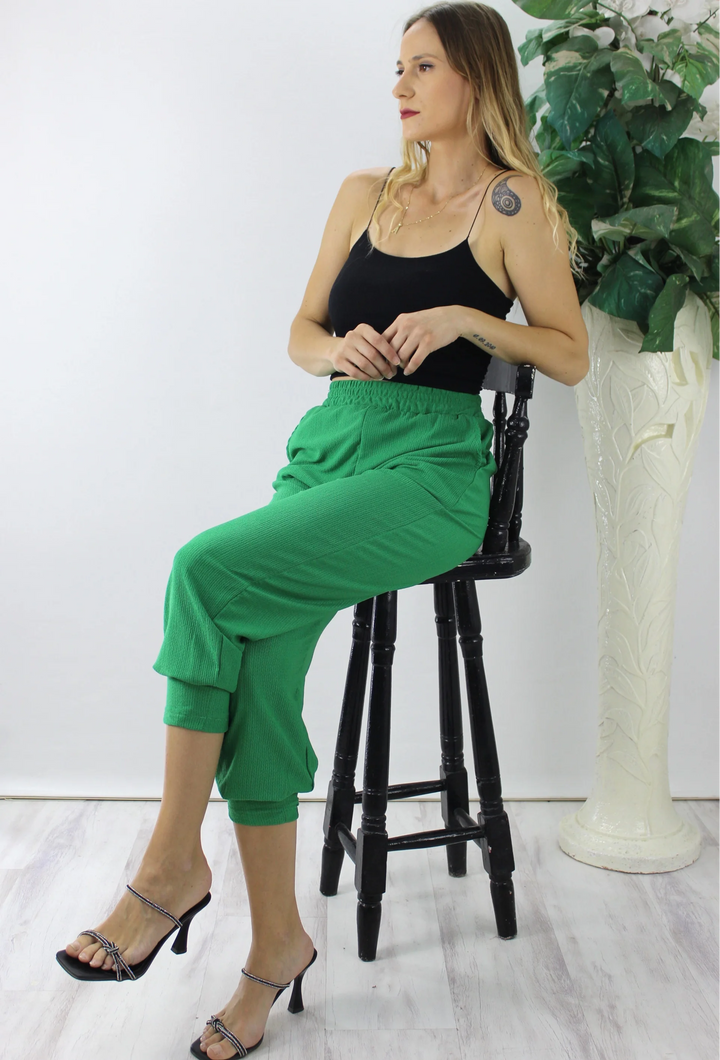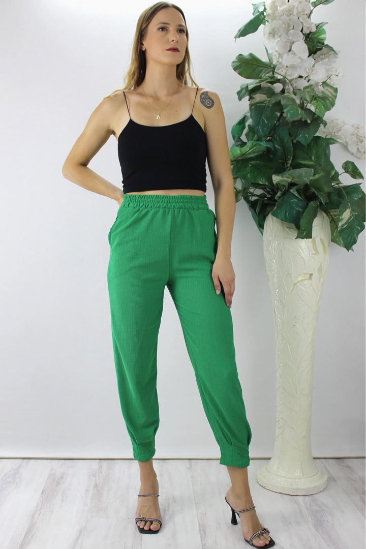 Krinkıl Paça Pensli Pantolon Yeşil - 130.265