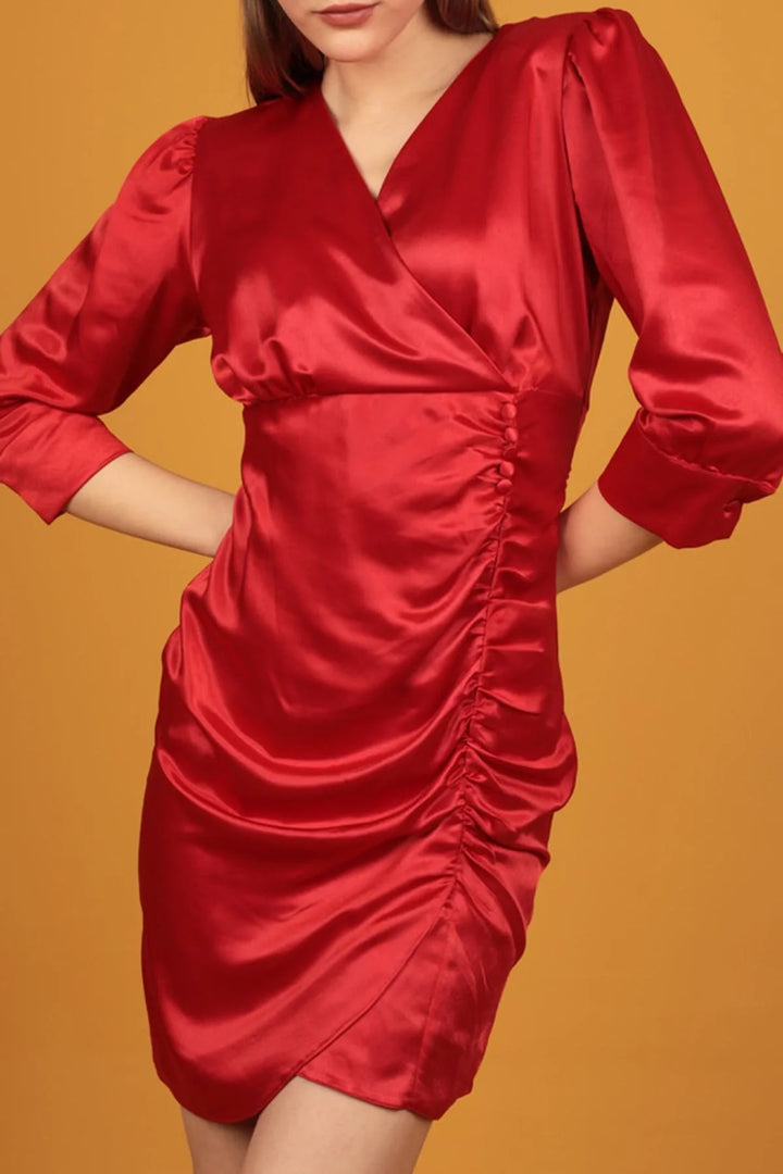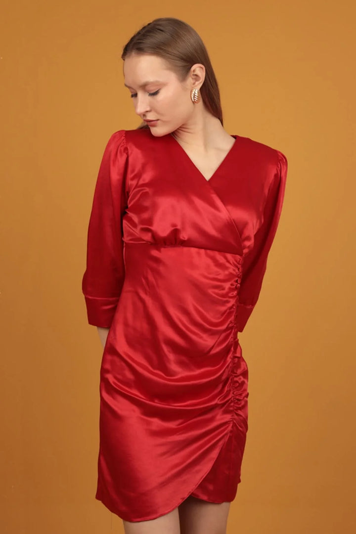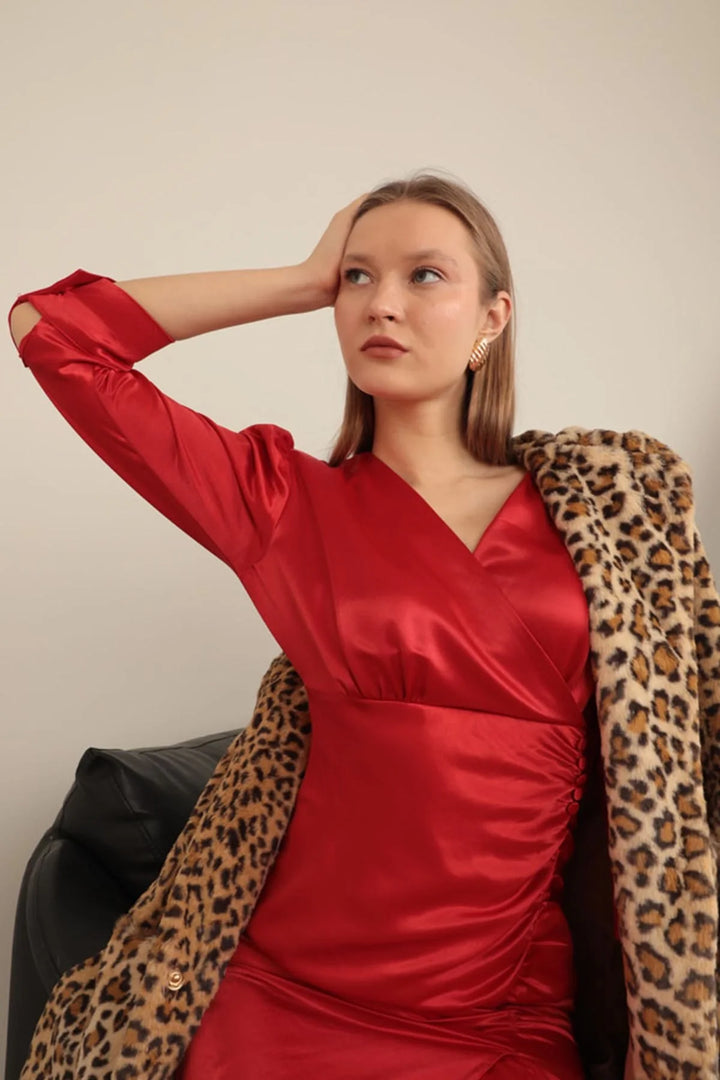 Kruvaze Büzgülü Saten Kırmızı Kadın Elbise, göz alıcı bir tarz sunuyor. Parlak ve akıcı saten kumaş, elbiseye lüks bir dokunuş katarken, kruvaze kesimi ve büzgülü detaylarıyla vücut hatlarını zarifçe vurguluyor. Kırmızı rengi, iddialı ve çekici bir görünüm sağlar. Bu elbise, özel davetler ve şık etkinlikler için mükemmel bir seçenektir. Toptan alımlarda, koleksiyonunuza ekleyerek müşterilerinize hem şık hem de zarif bir alternatif sunabilirsiniz.