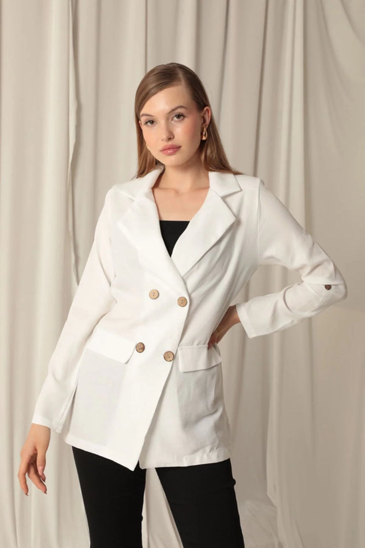 Melanj Keten Kumaş Kadın Ekru Ceket