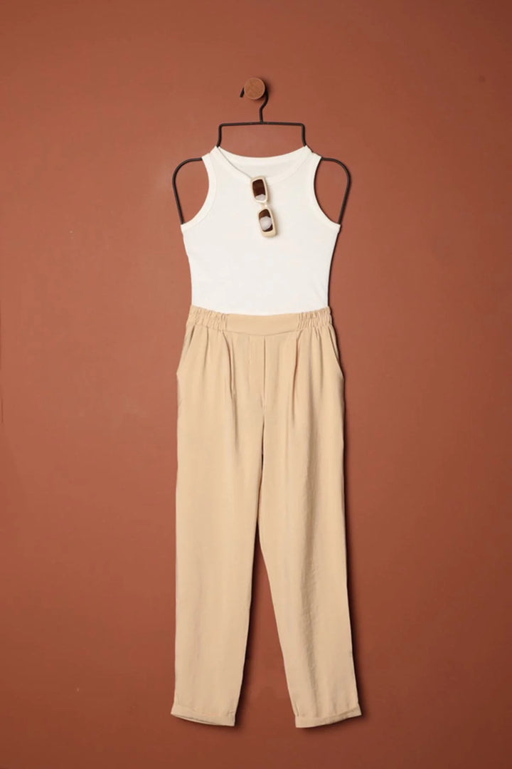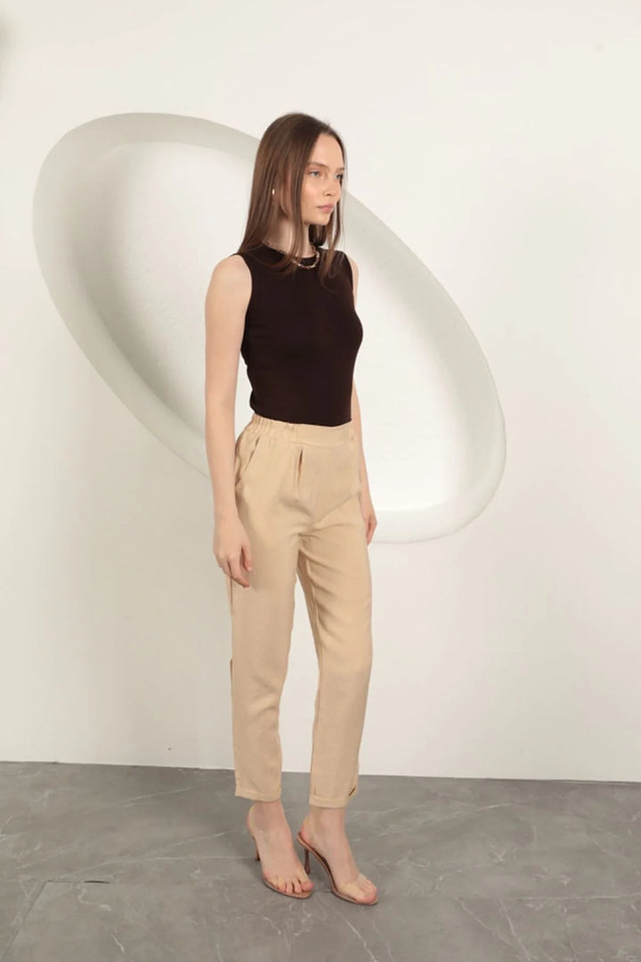 Modal Kumaş Duble Paça Kadın Pantolon-Bej