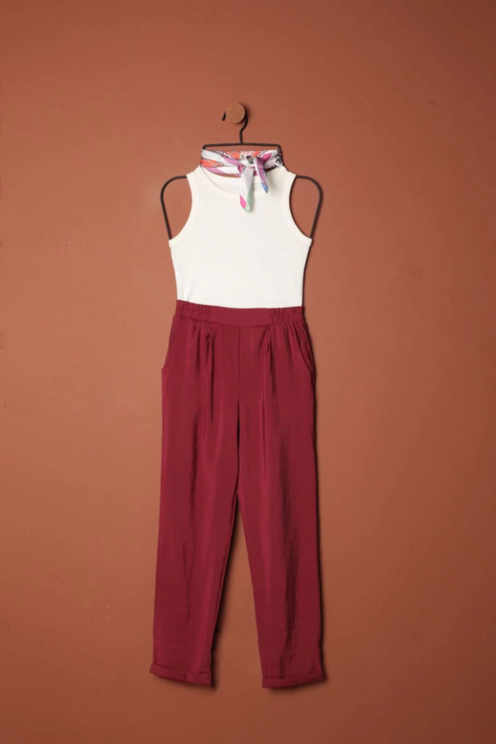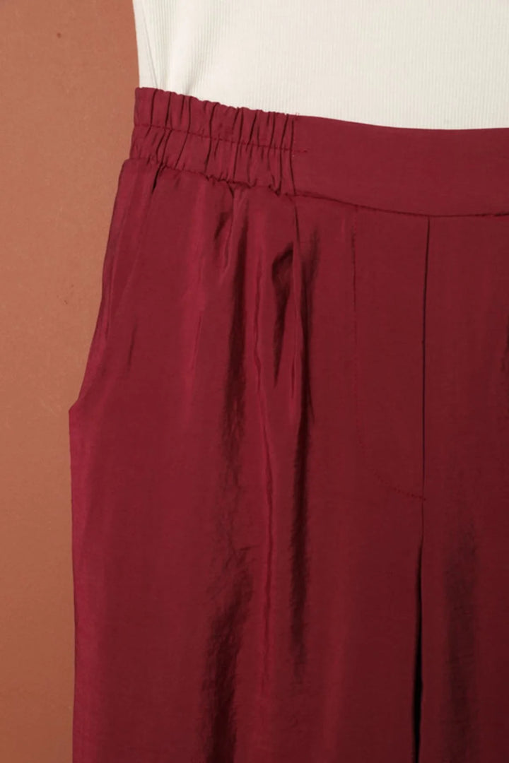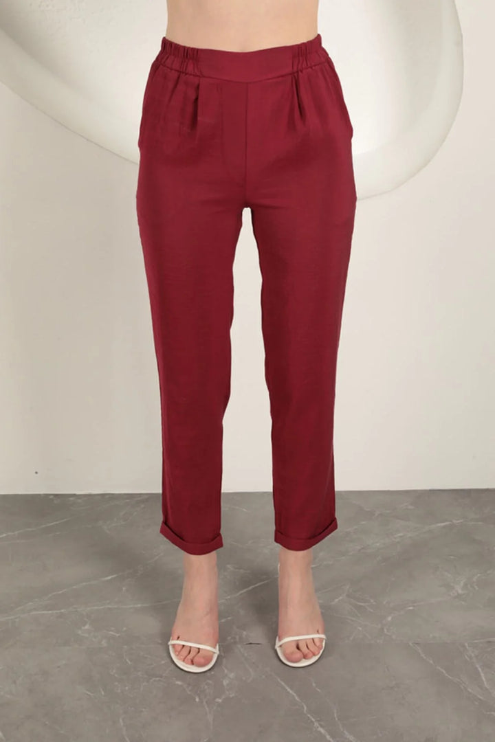 Modal Kumaş Duble Paça Kadın Pantolon-Bordo