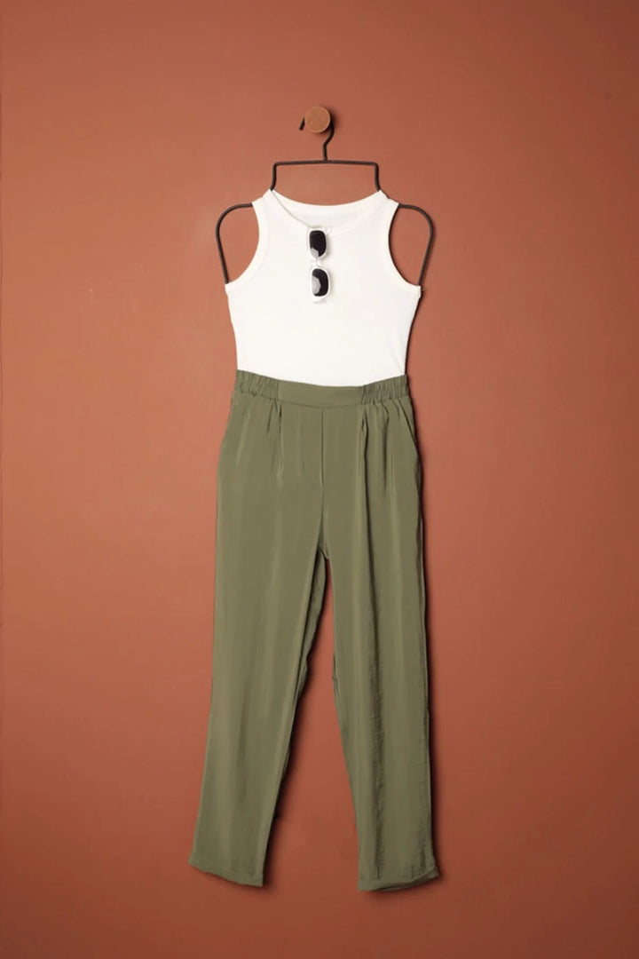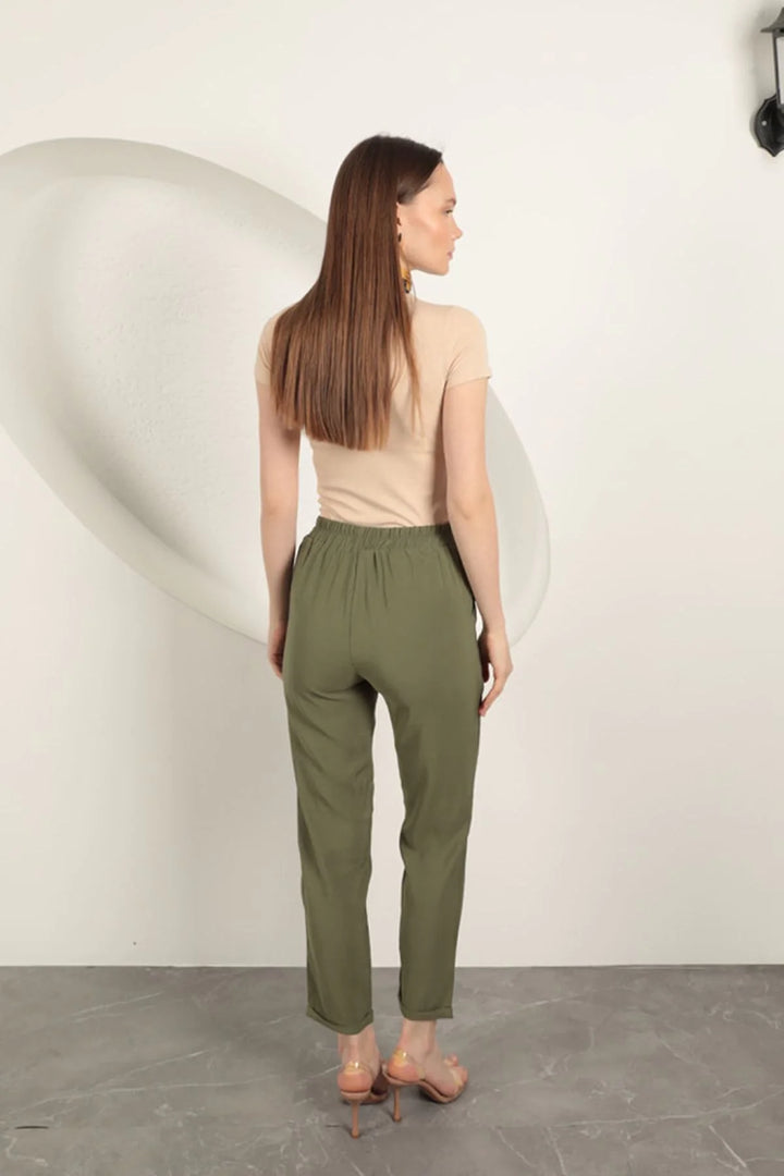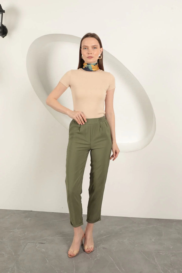 Modal Kumaş Duble Paça Kadın Pantolon-Haki