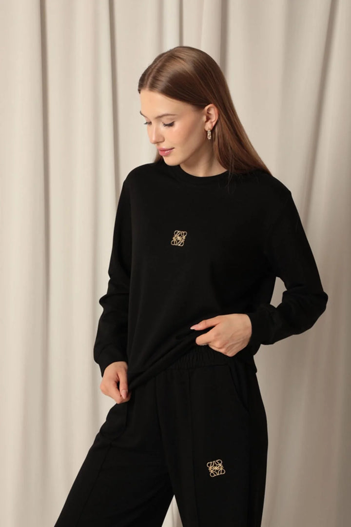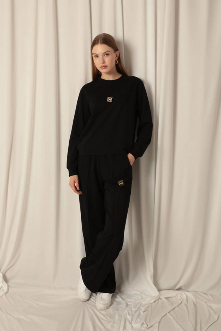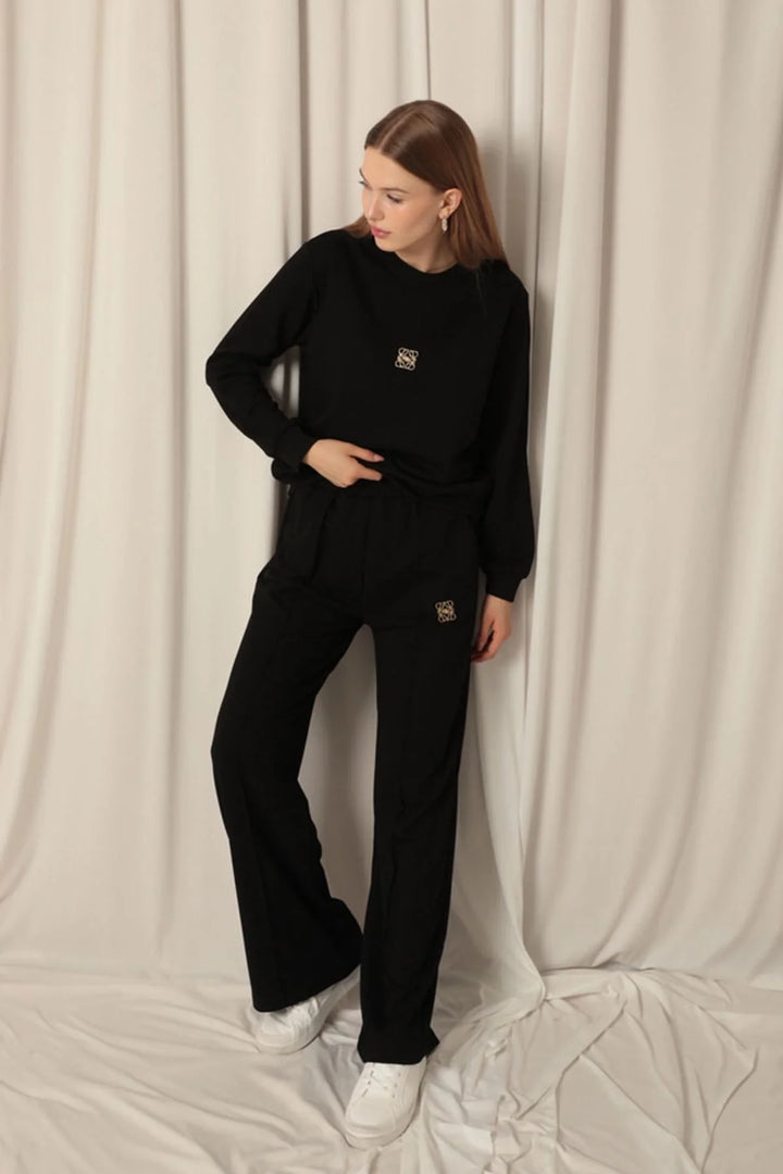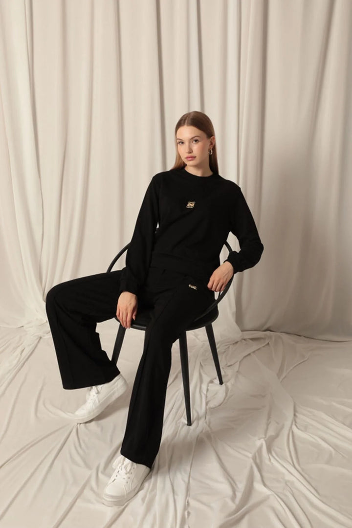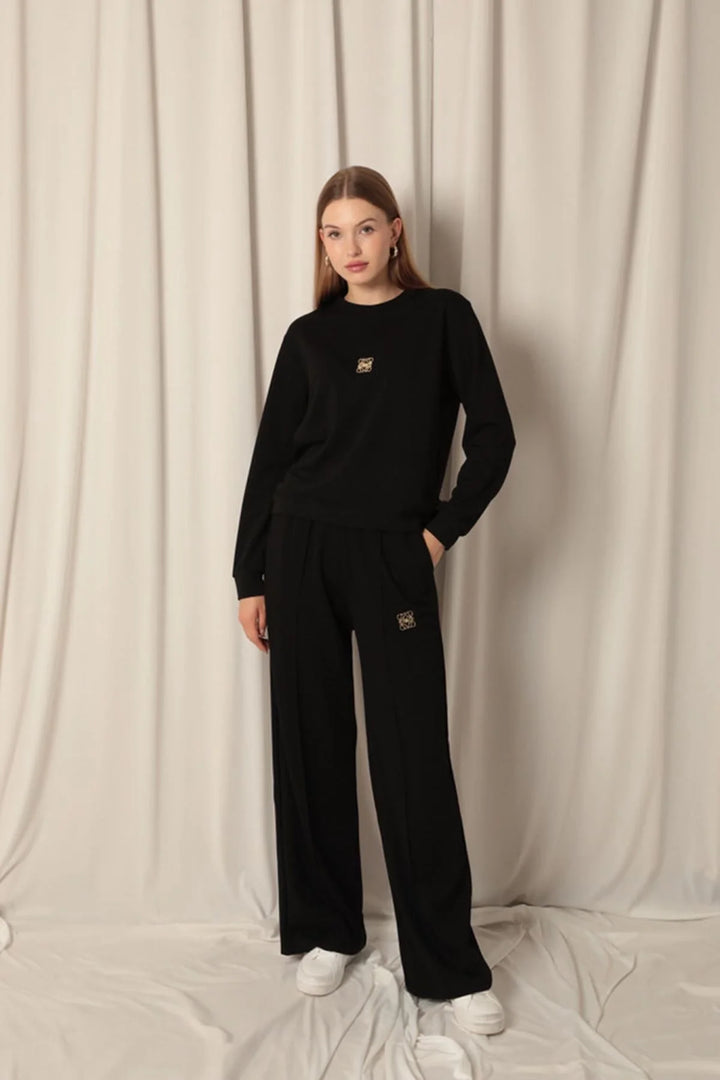 Modal Kumaş Metal Aksesuarlı Kadın Siyah Takım