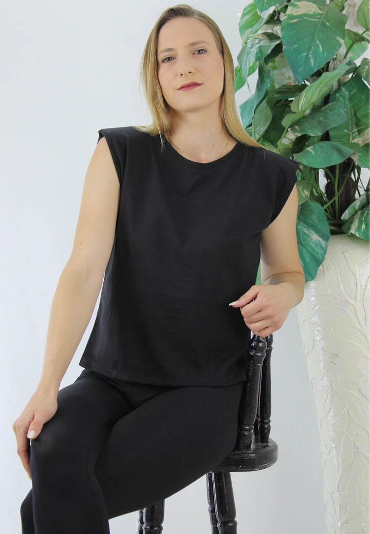 Omuz Vatkalı T-Shirt Siyah - Lks01.10
