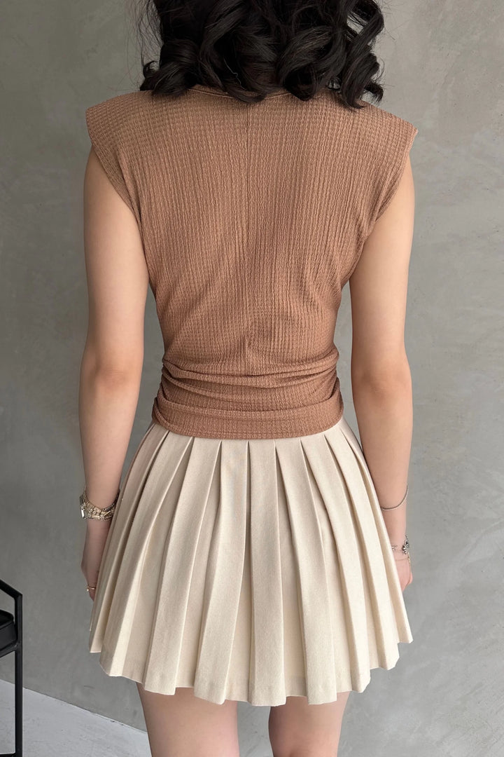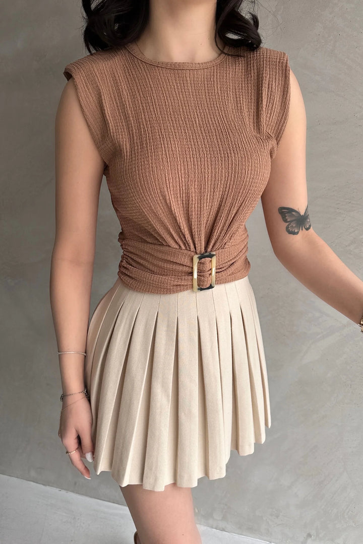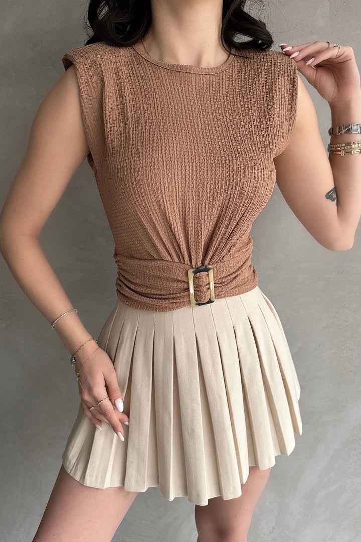 Omuzu Vatkalı Beli Kemerli Bürümcük Bluz