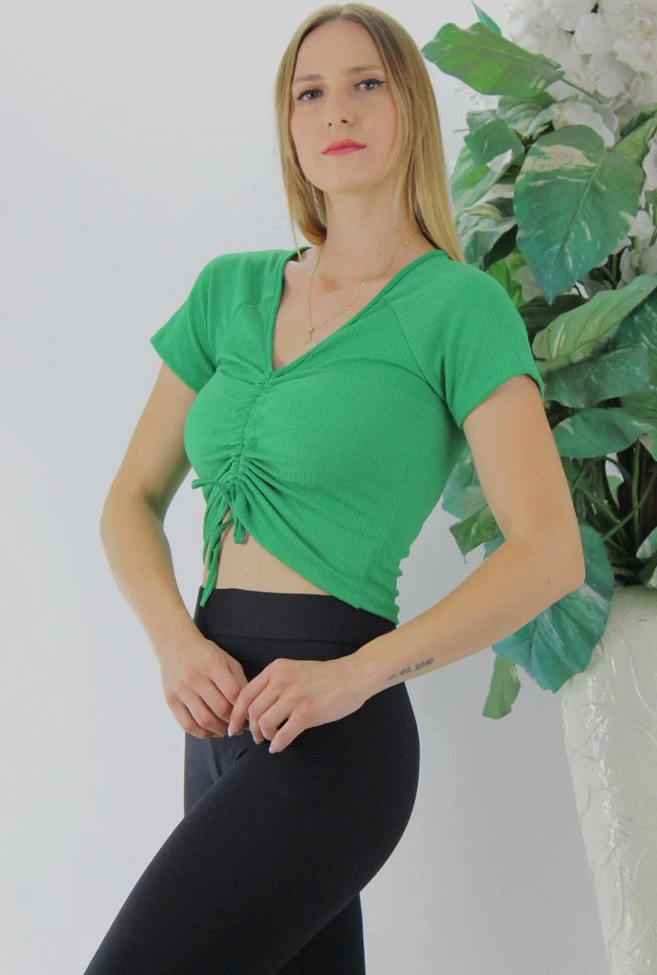 Ön Büzgülü Crop Bluz Yeşil - 1293.33