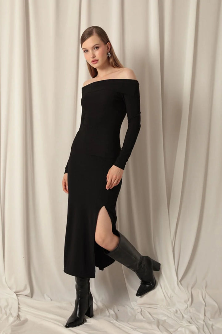 Ottoman Kumaş Madonna Yaka Kadın Siyah Bluz