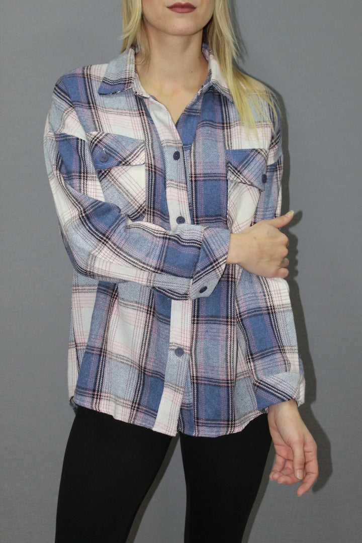 Oversize Ekose Gömlek Mavi - 4686.140