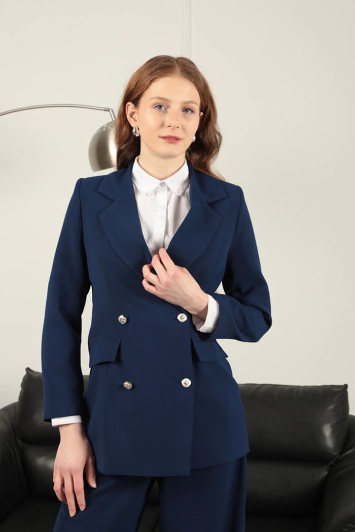 Poliviskon Kumaş Kadın Ceket-Lacivert