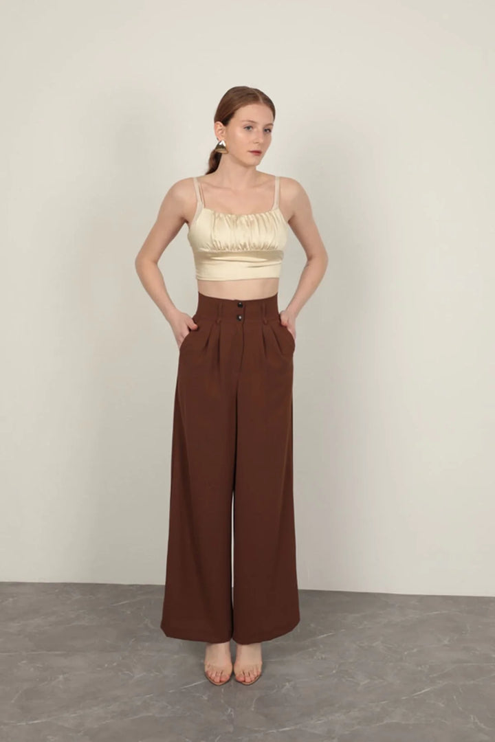 Poliviskon Kumaş Kadın Pantolon-Kahve