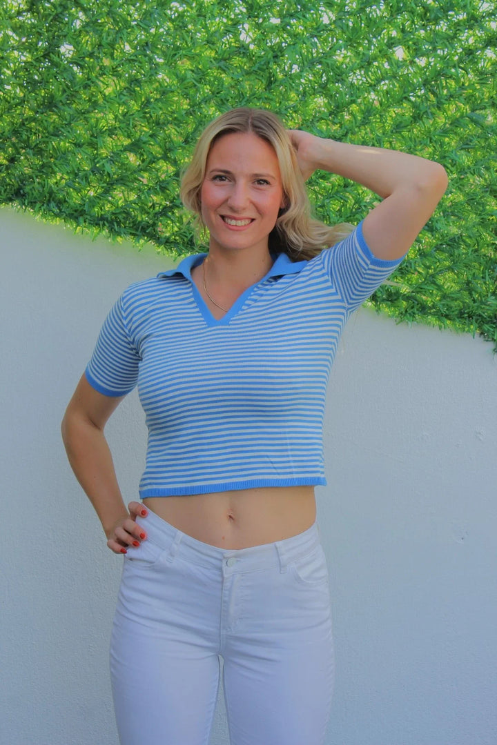 Polo Yaka Çizgili Tişört Mavi - 140.055
