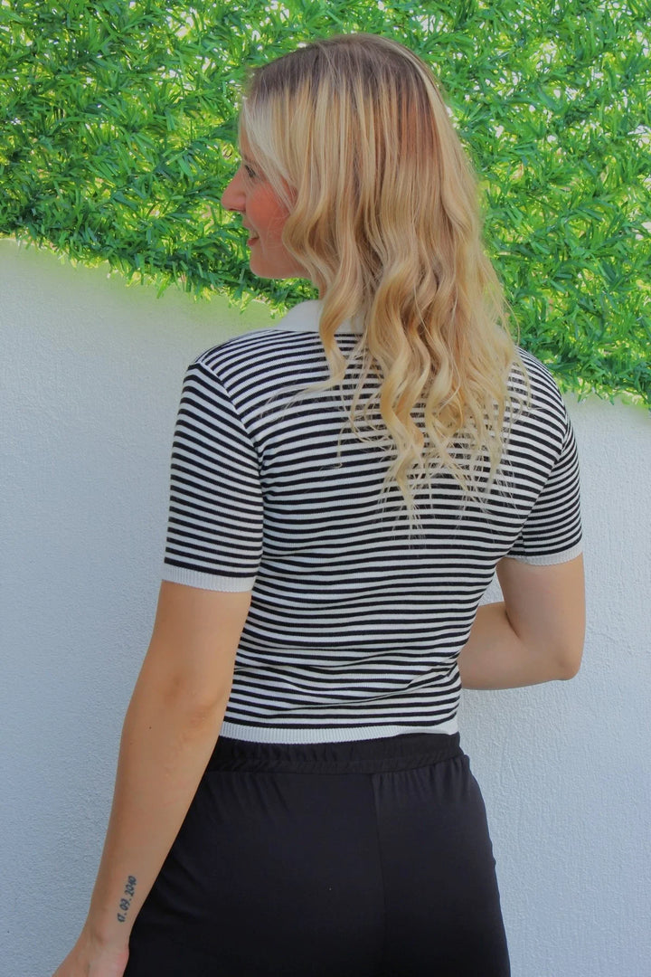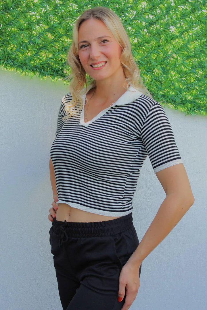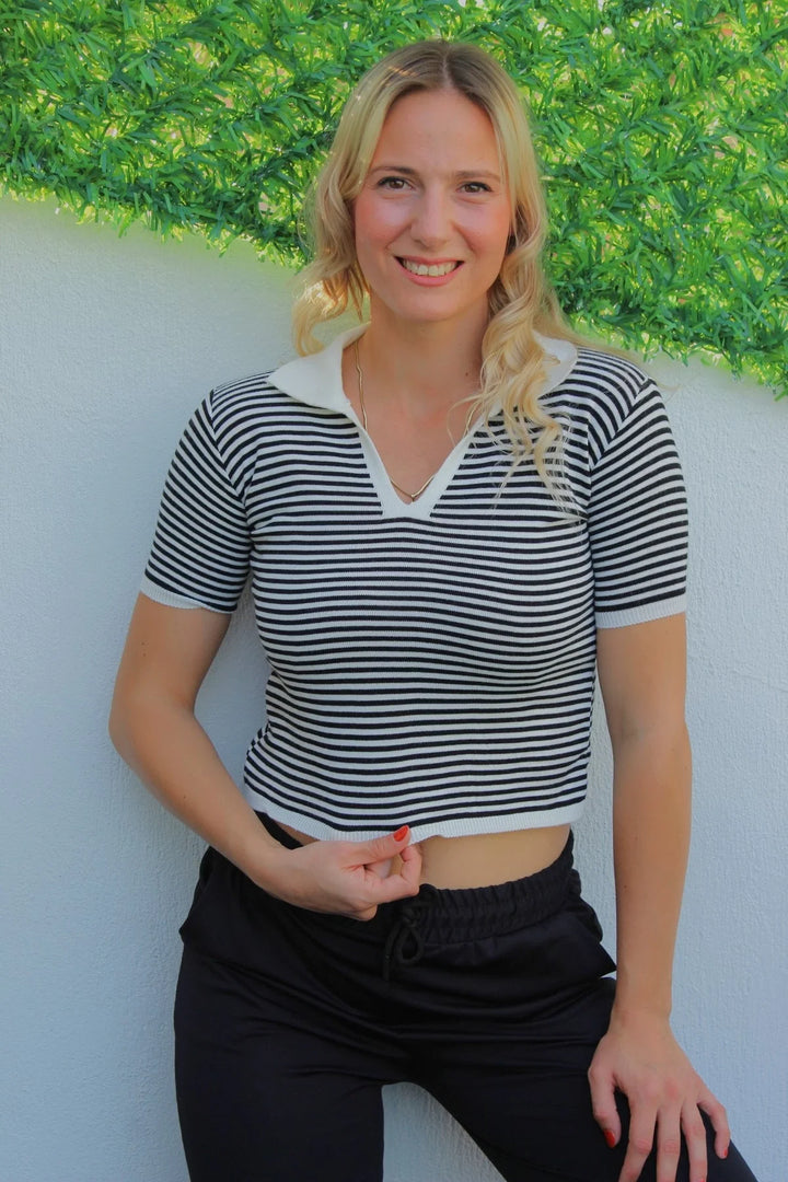 Polo Yaka Çizgili Tişört Siyah - 140.055