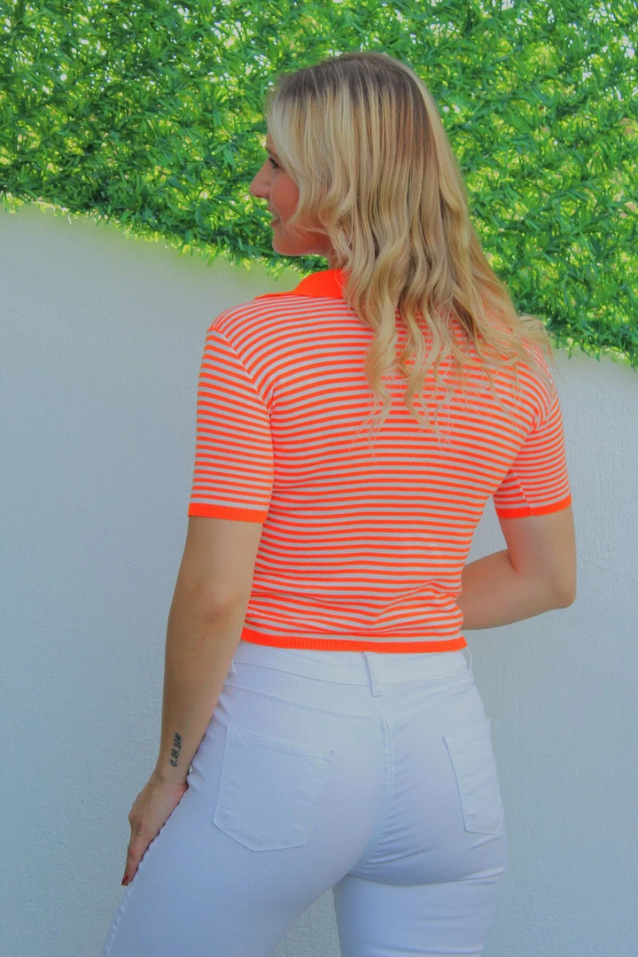Polo Yaka Çizgili Tişört Turuncu - 140.055