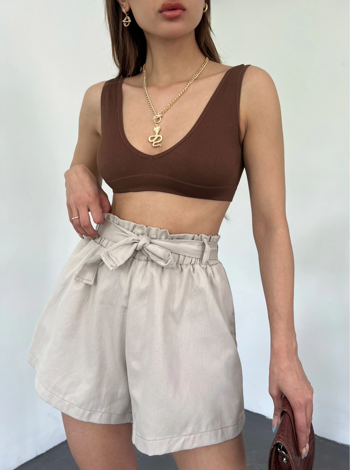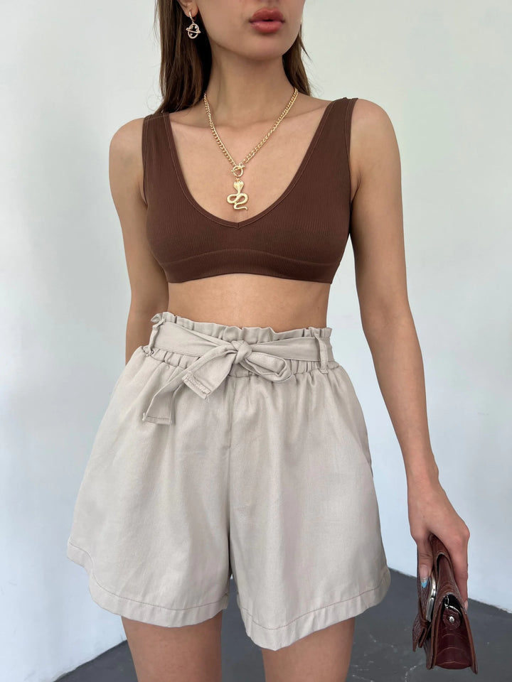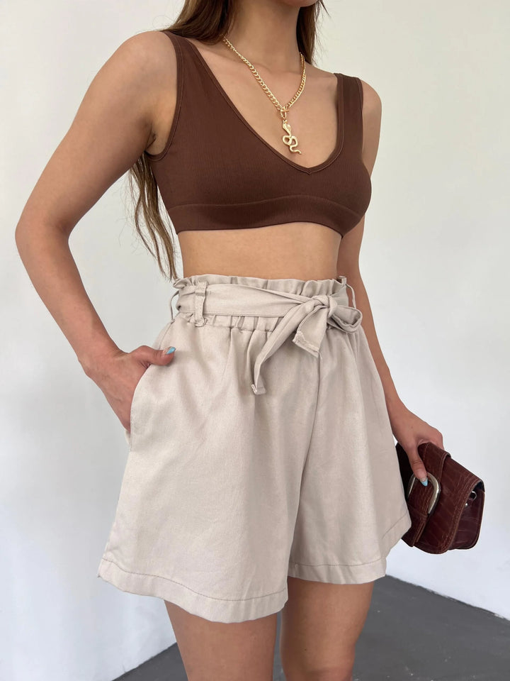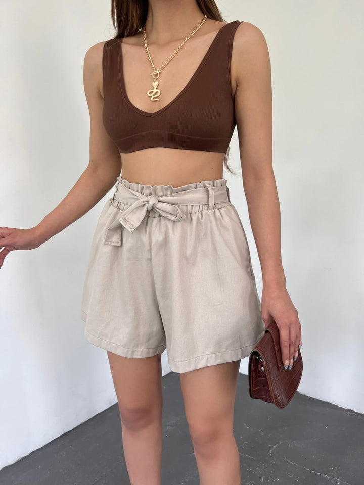 Rahat Kesim Beli Büzgülü Cepli Şort