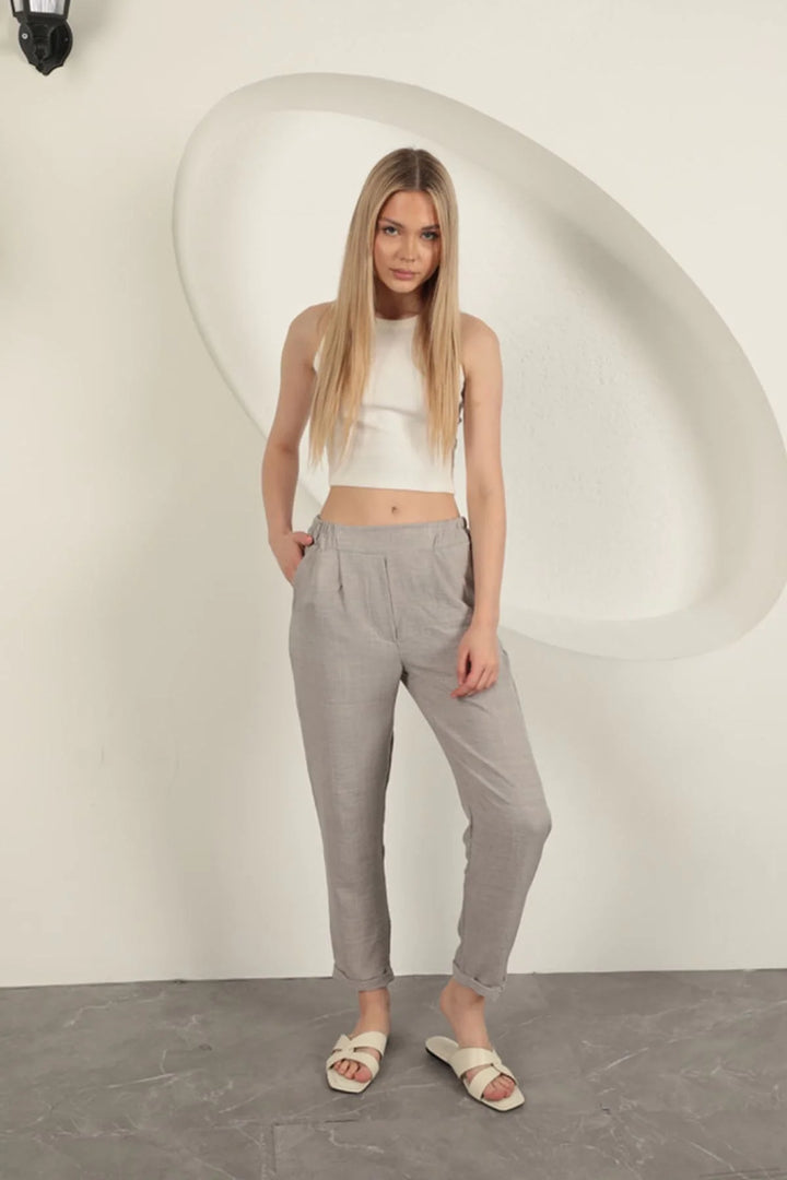 Sofia Keten Duble Paça Kadın Pantolon-Gri