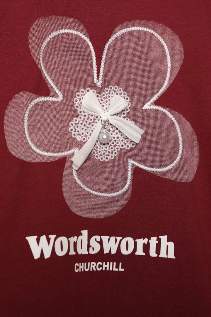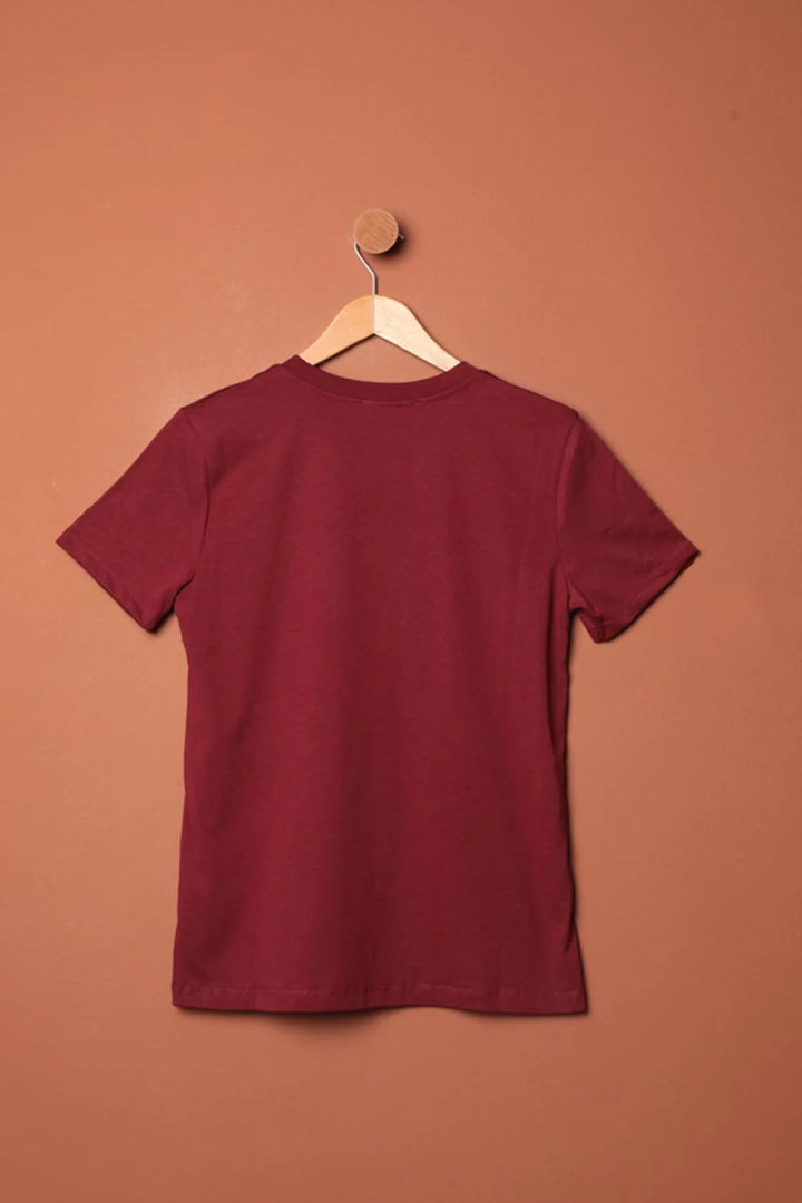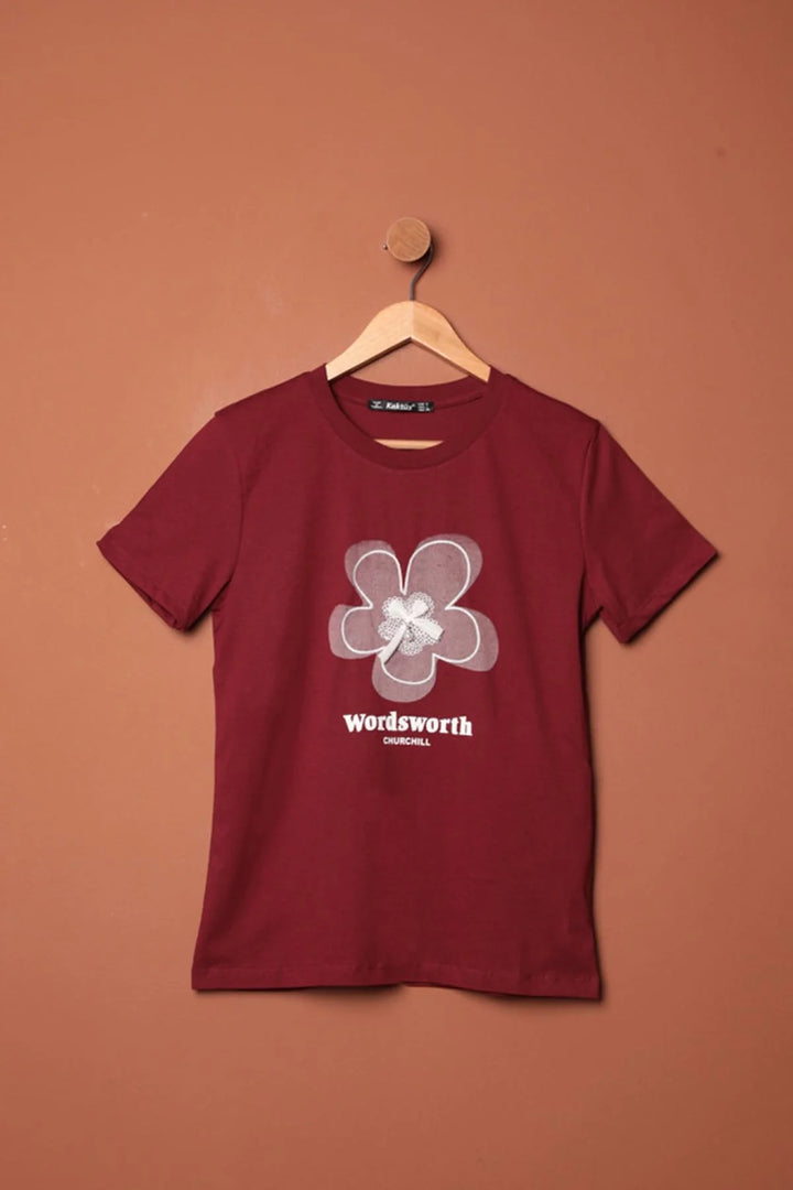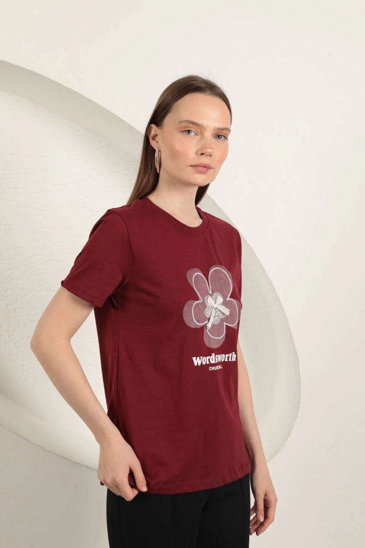 Süprem Kumaş Fiyonk Baskılı Tişört-Bordo