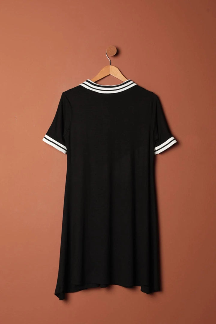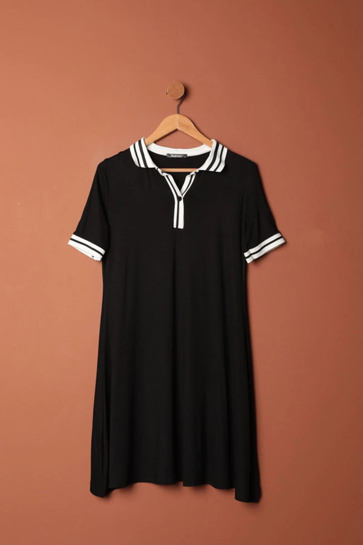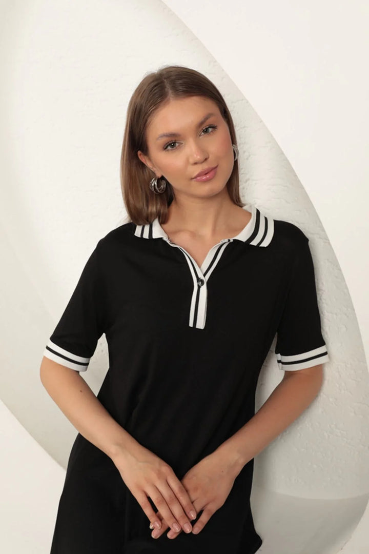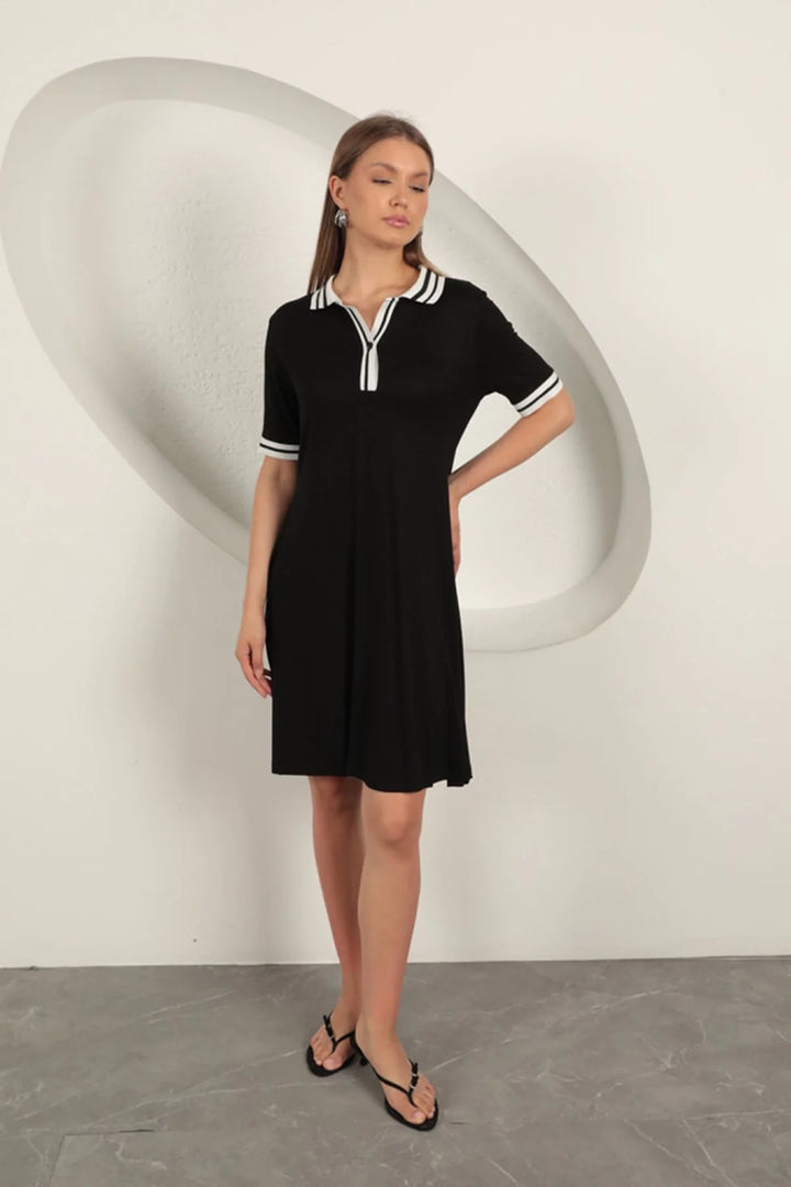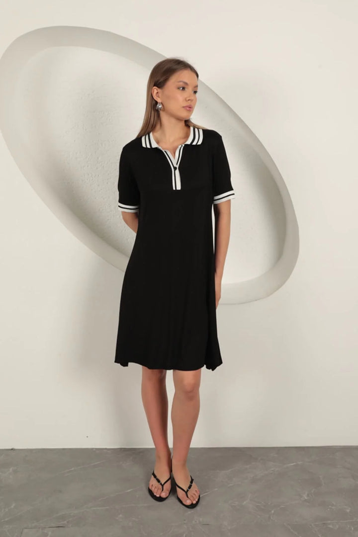 Süprem Kumaş Polo Yaka Elbise-Siyah