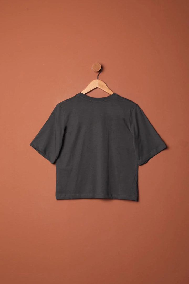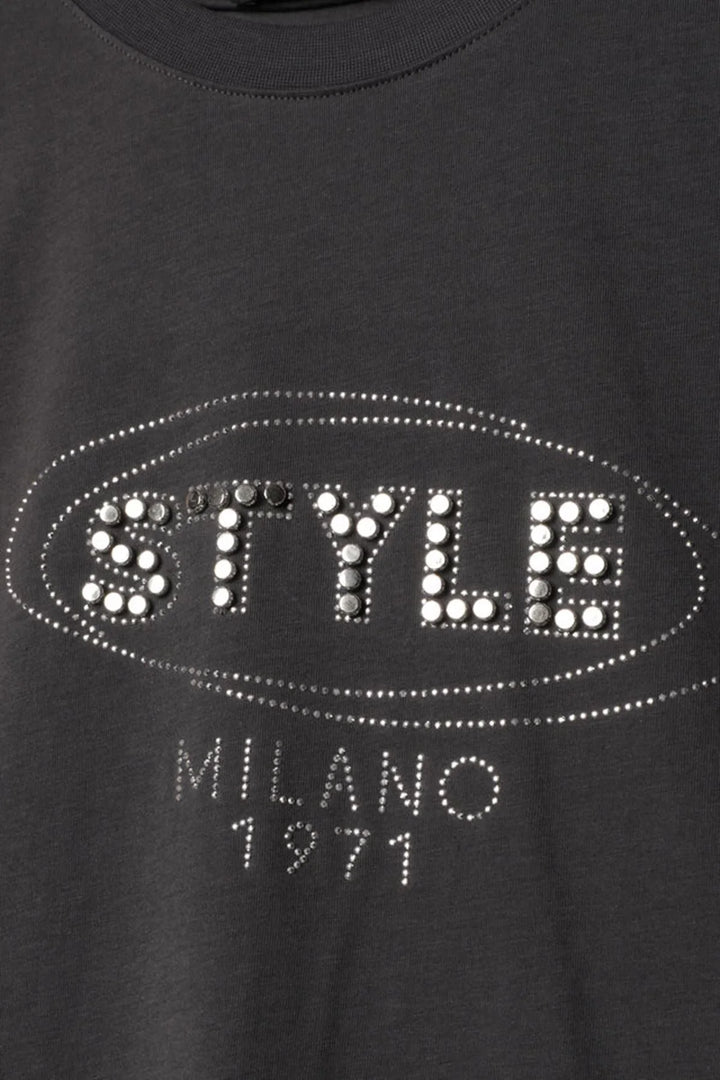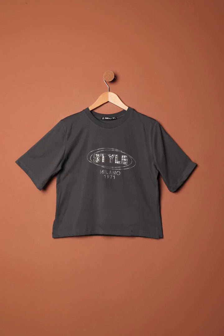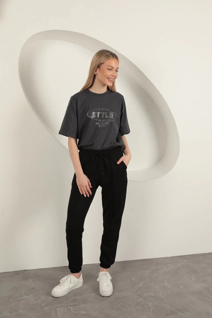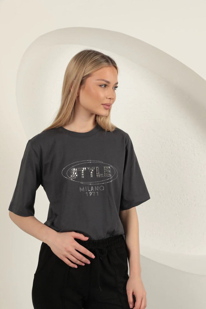 Süprem Kumaş Taş Detaylı Kadın Tişört-Antrasit