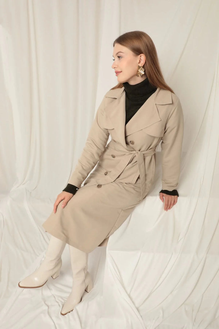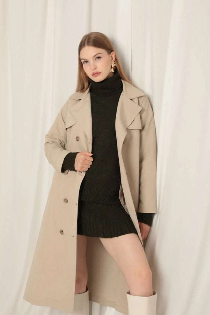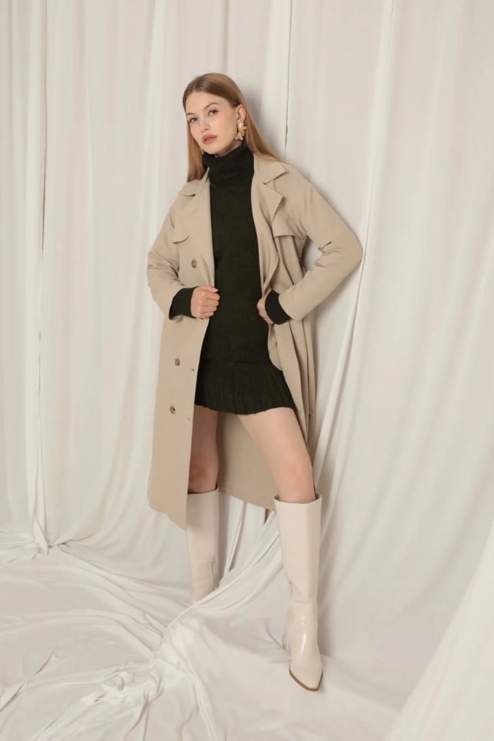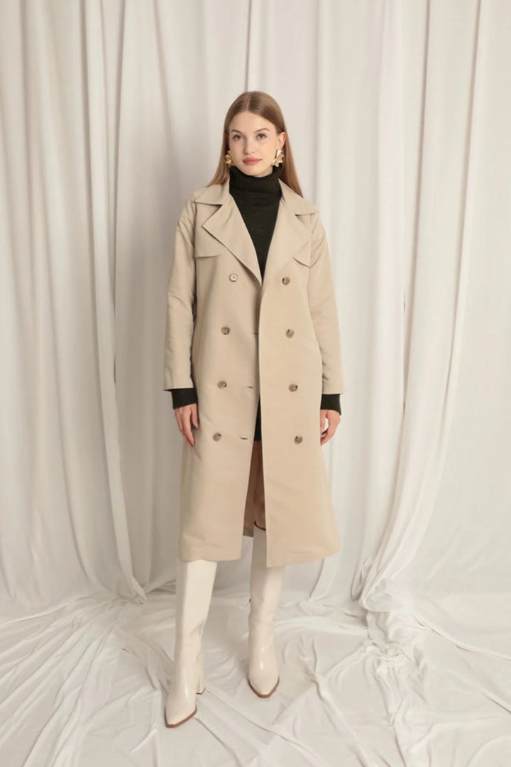 Torino Kumaş Sıvı Geçirmez Maxi Boy Kadın Taş Trençkot