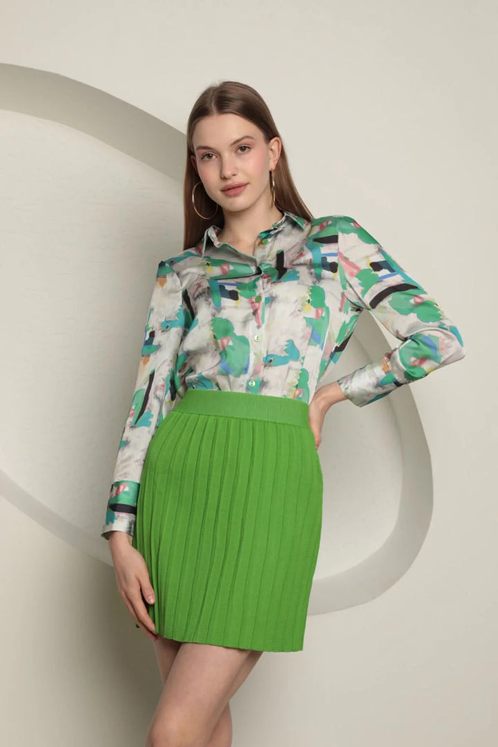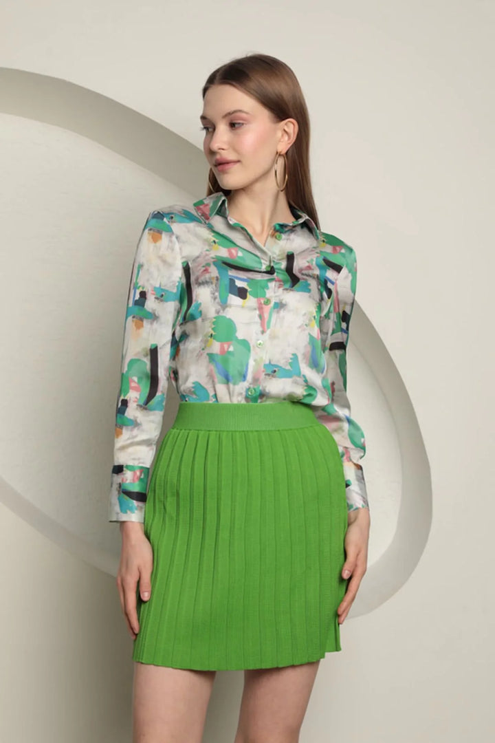 Triko Kadın Pileli Etek-Yeşil